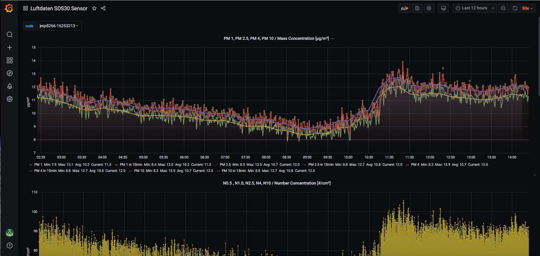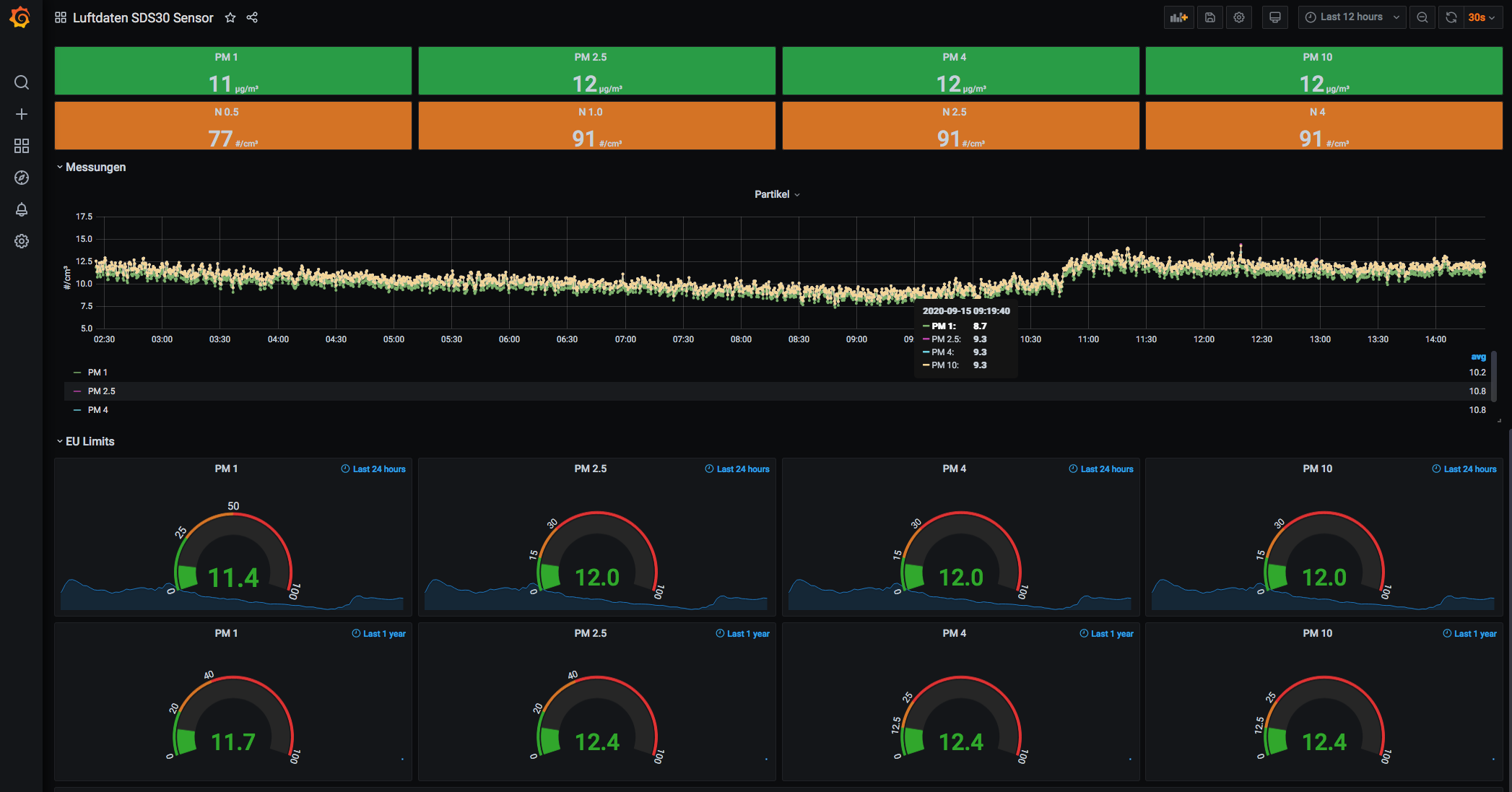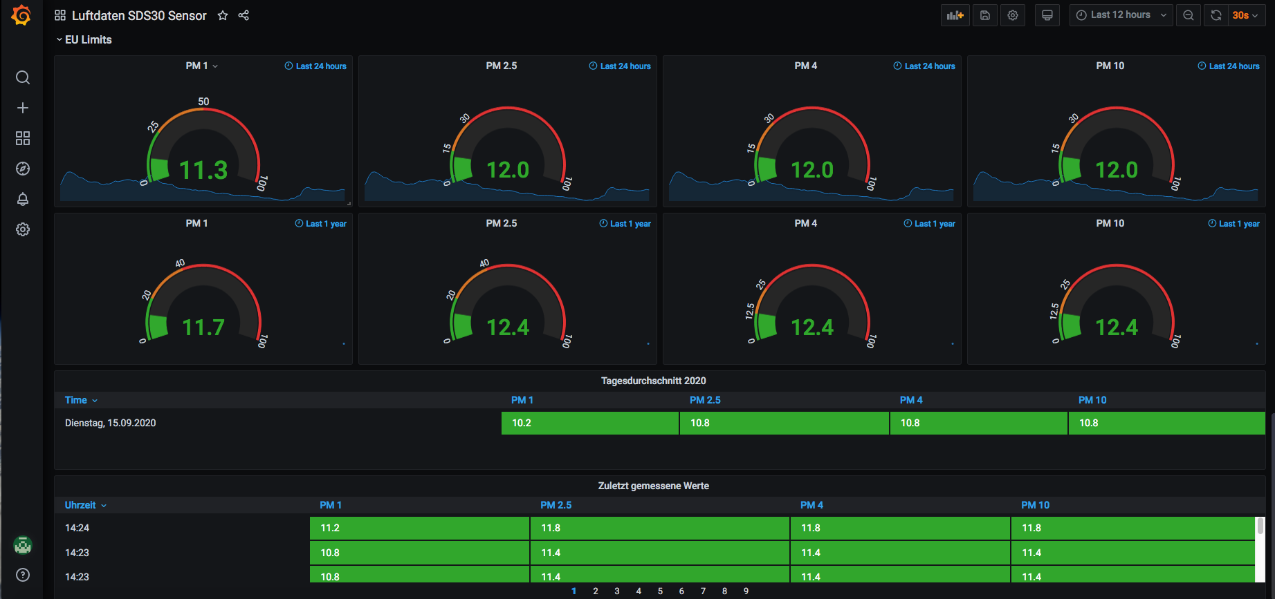 Dashboard for the sensors from luftdaten.info. Uses influxdb - directly multiple supported for SDS30 sensors only