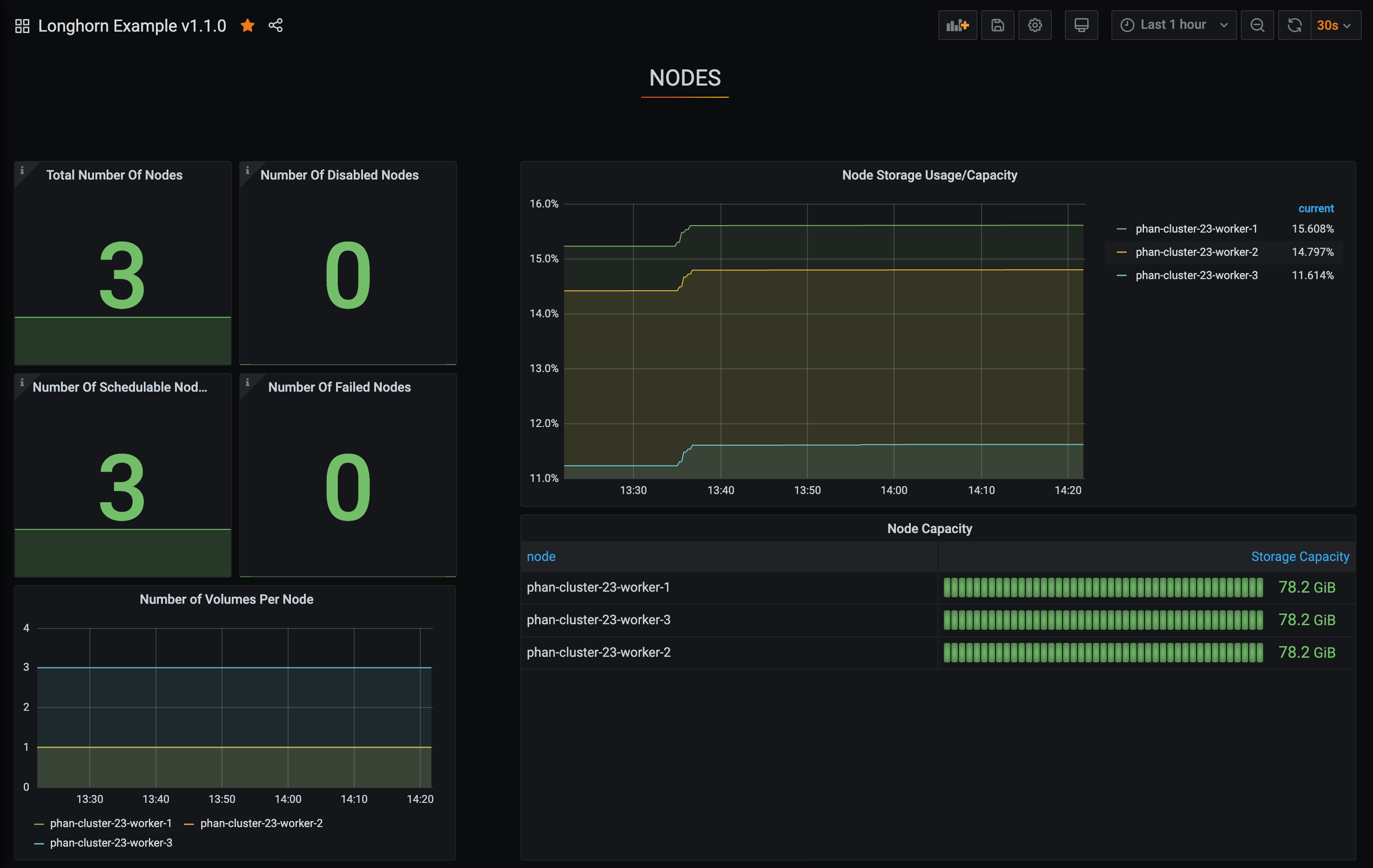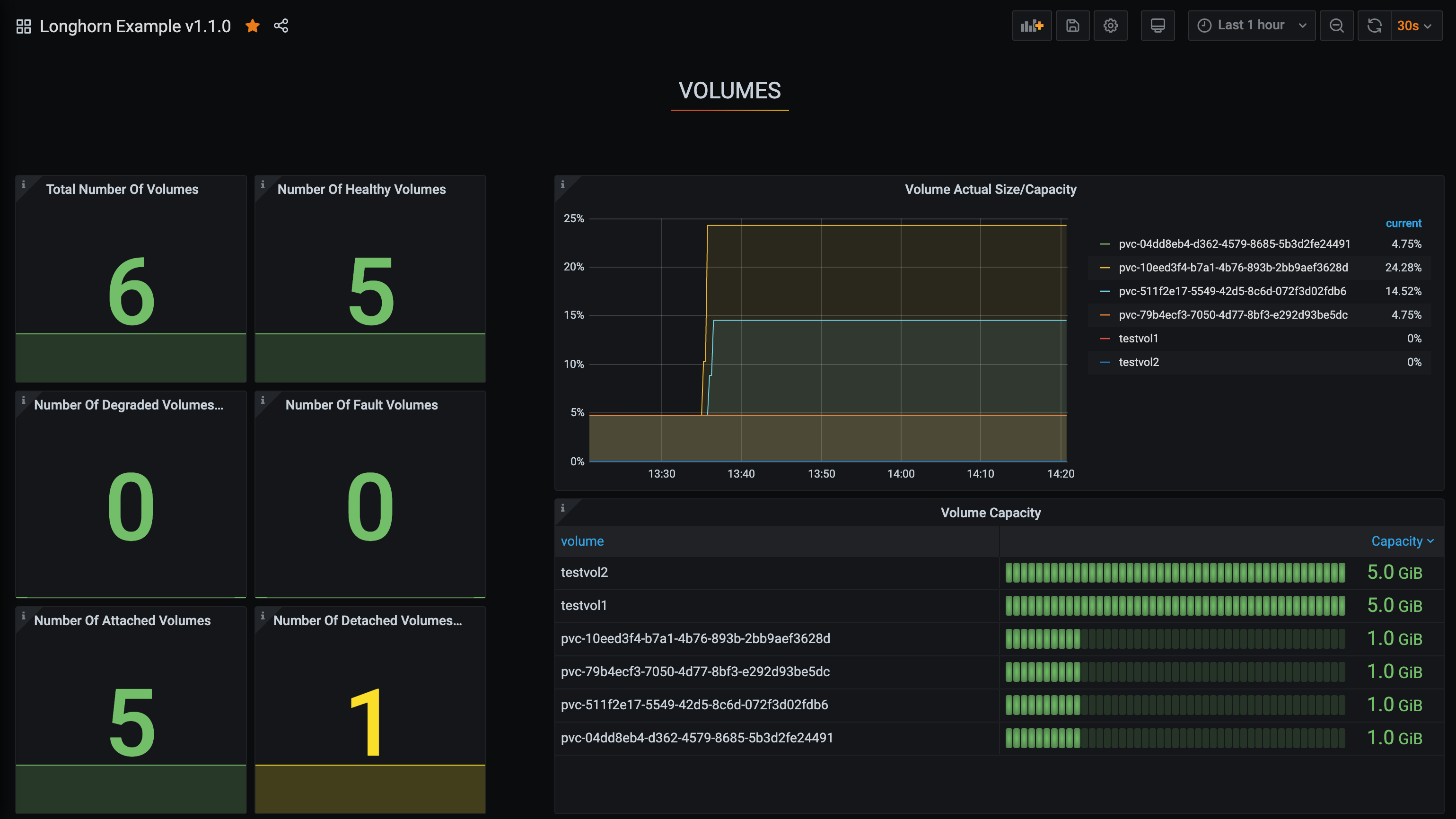 An example dashboard for Longhorn v1.1.0