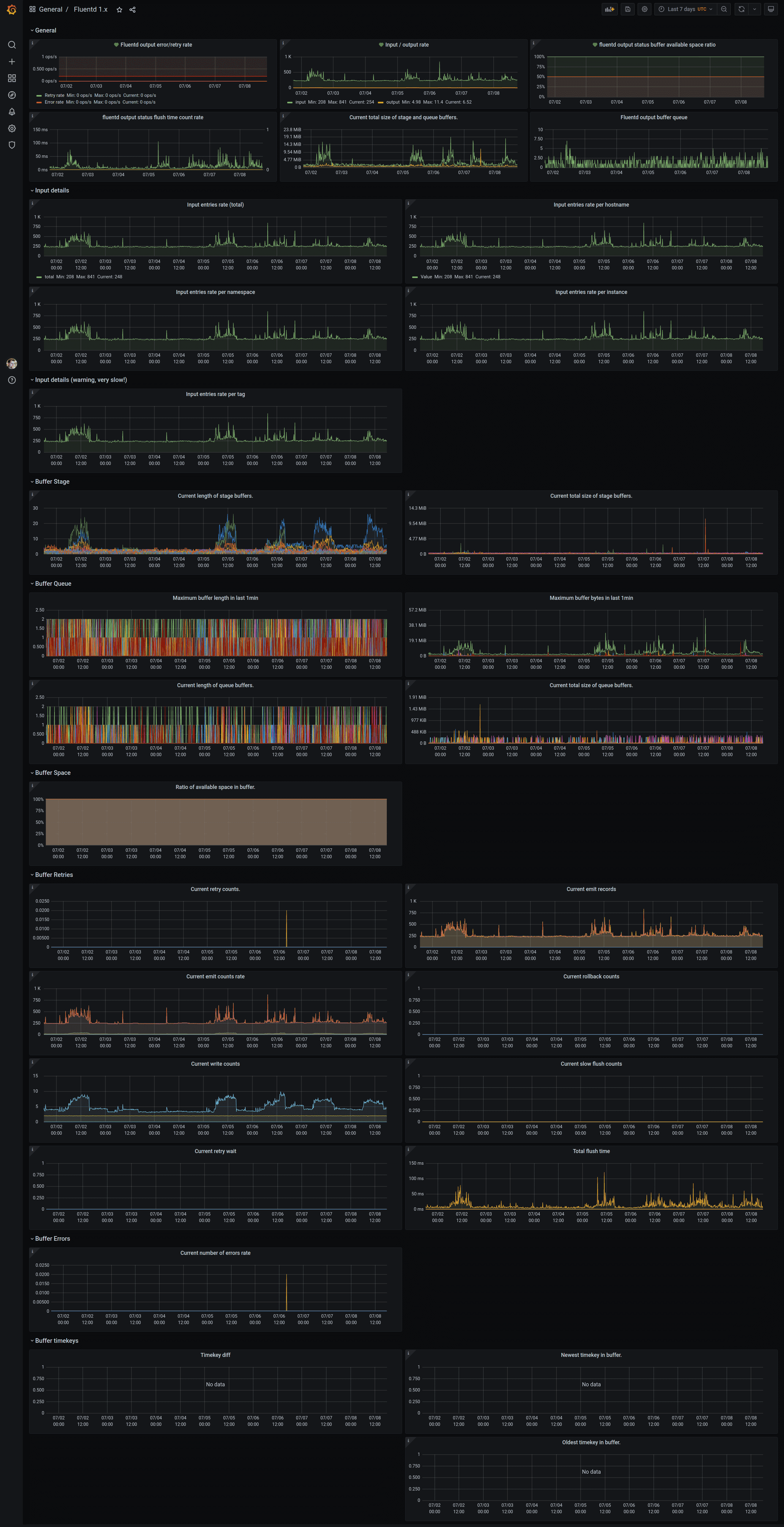 - Input filter by tag can produce insane amount of labels for metric, especially when using fluent-plugin-kubernetes_metadata_filter. This can severely influence prometheus performance (and also grafana), that's why it's safer to use tag_parts[0] or tag_prefix[x].