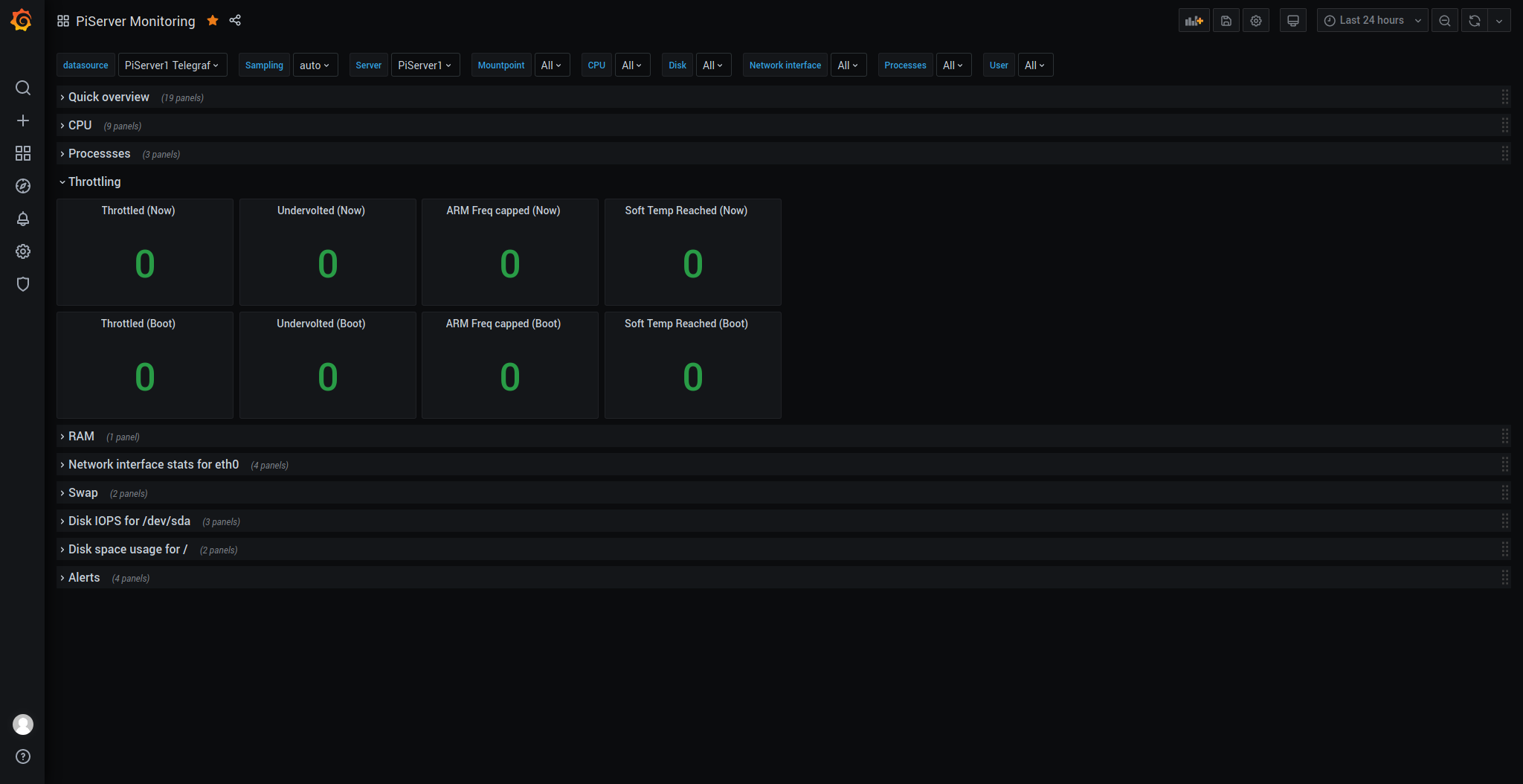 Uses the Telegraf telegraf-pi-bash get-throttled script; for more info about the dashboard and its configuration i refer to this blogpost.
