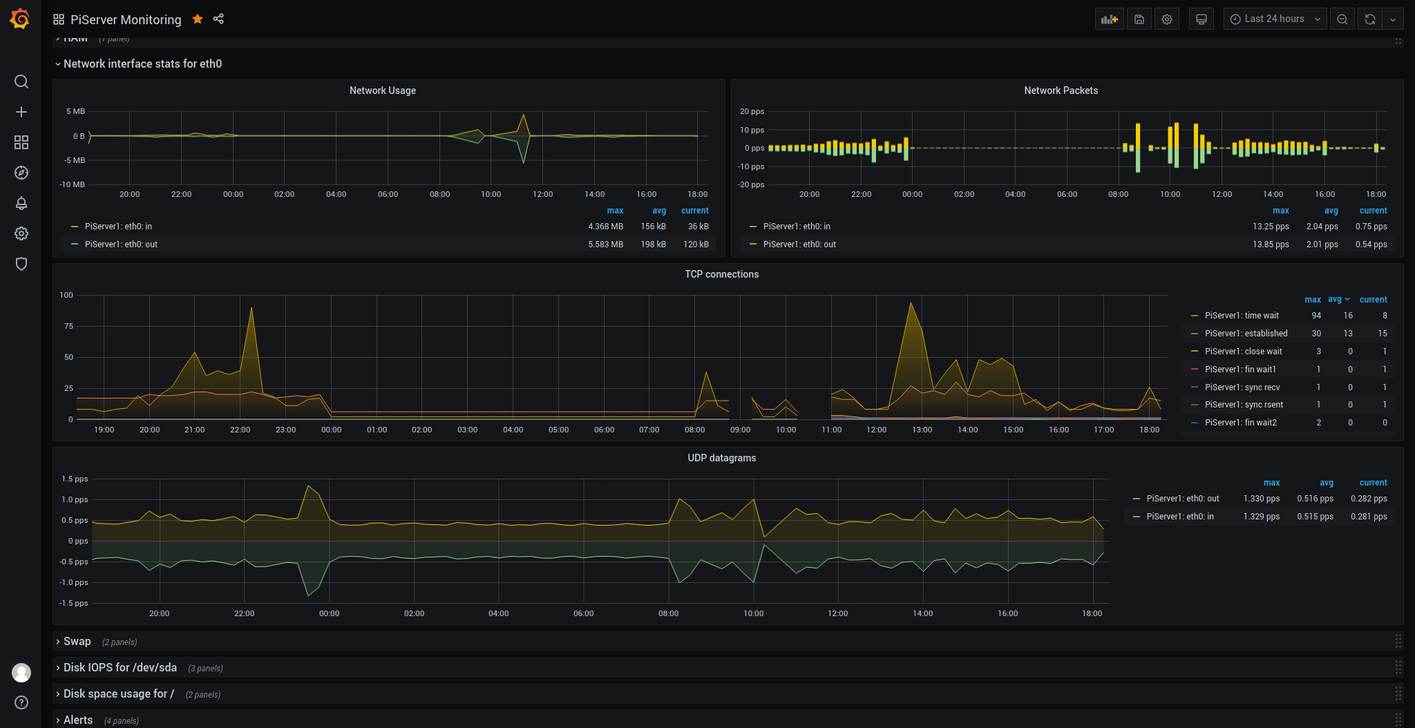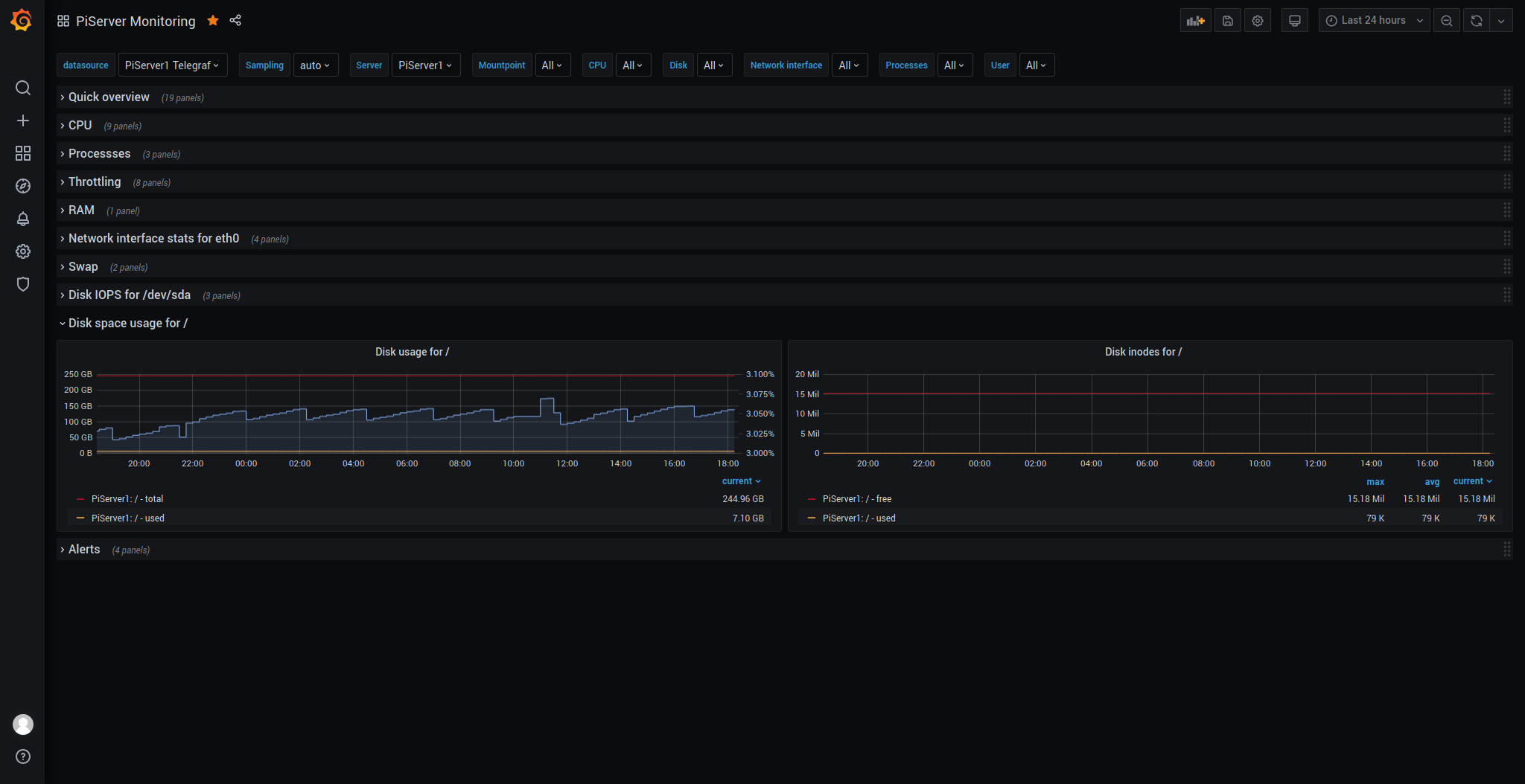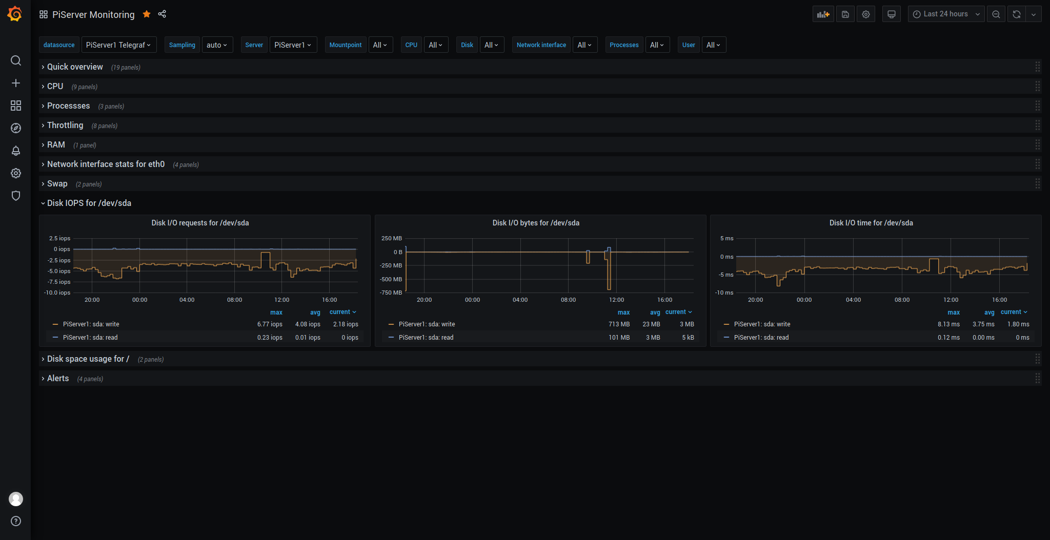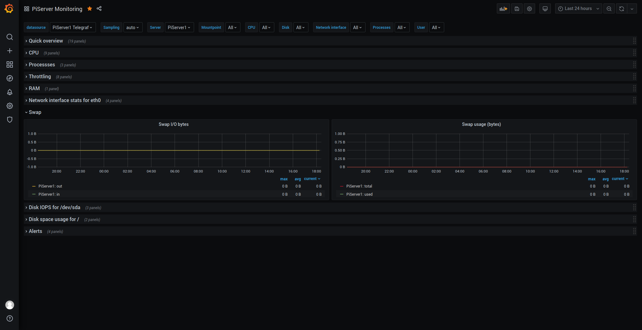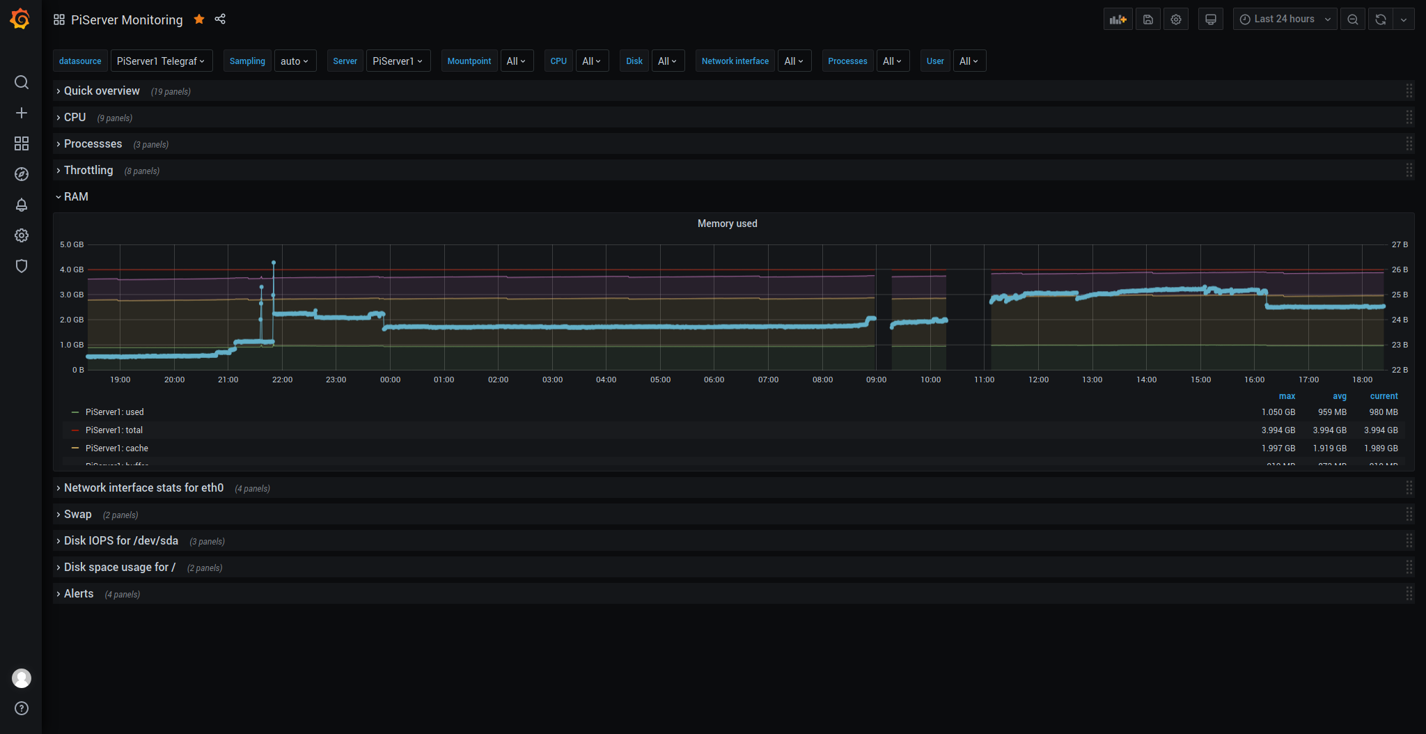 This dashboard is based on the Raspberry Pi Monitoring, System and Linux OS Processes Metrics community dashboards.