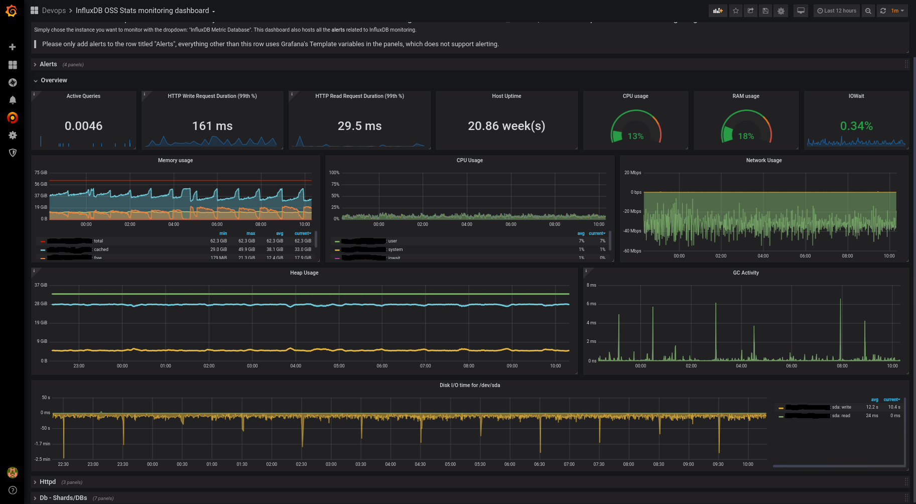 I hope this made using Influx a little more enjoyable. I use this to monitor multiple InfluxDB instances hosted on different base OSes, this dashboard cover all of my needs. Thank you!