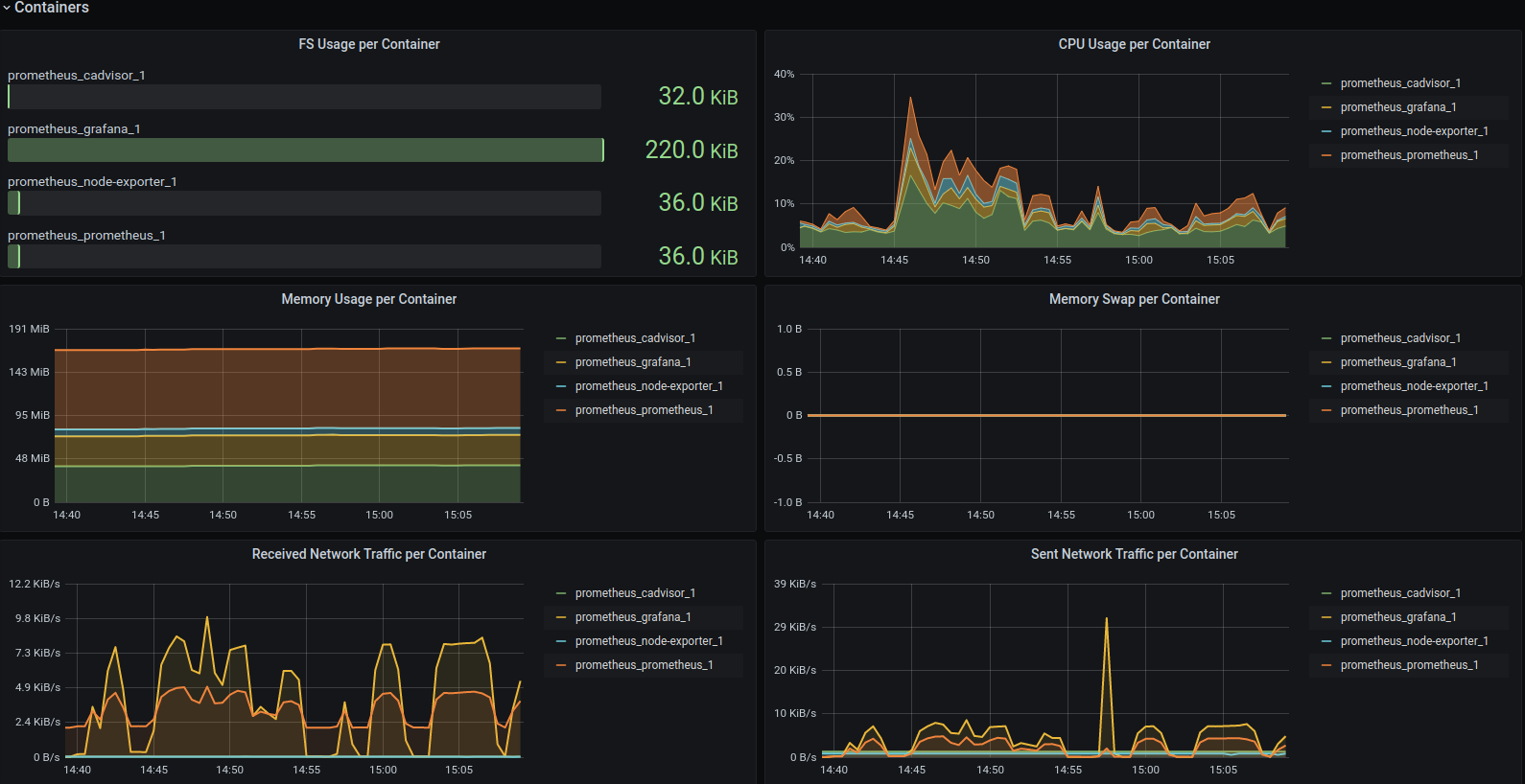 Esse dashboard foi desenvolvido em conjunto dos exportadores cAdvisor + Prometheus + Node Exporter.