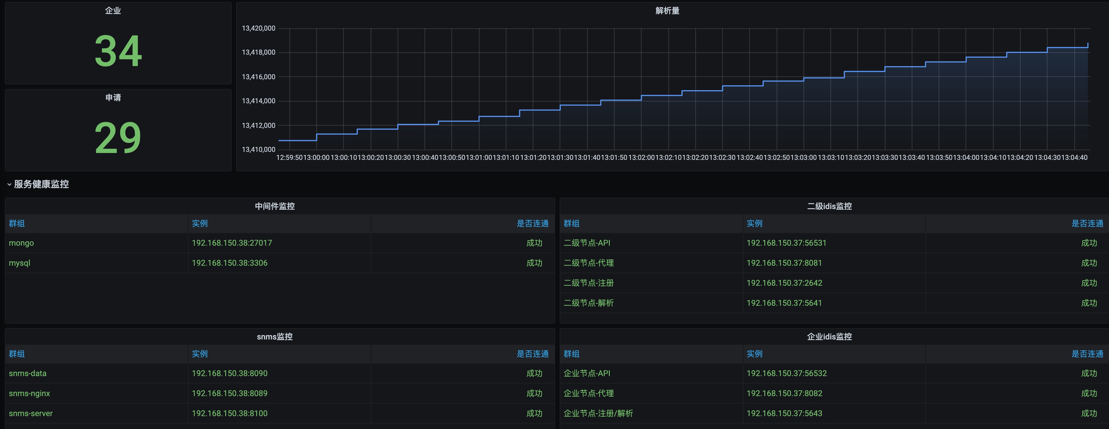 The idpointer dashboard uses the prometheus data source to create a Grafana dashboard with the graph, stat and table panels.