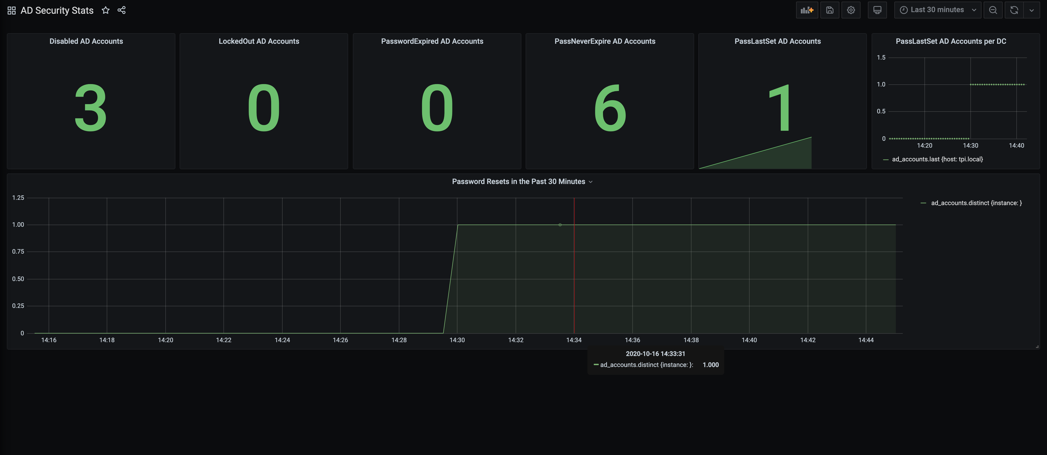 A graph to display Important Active Directory Accounts Statistics like number of locked out accounts, password resets over time etc