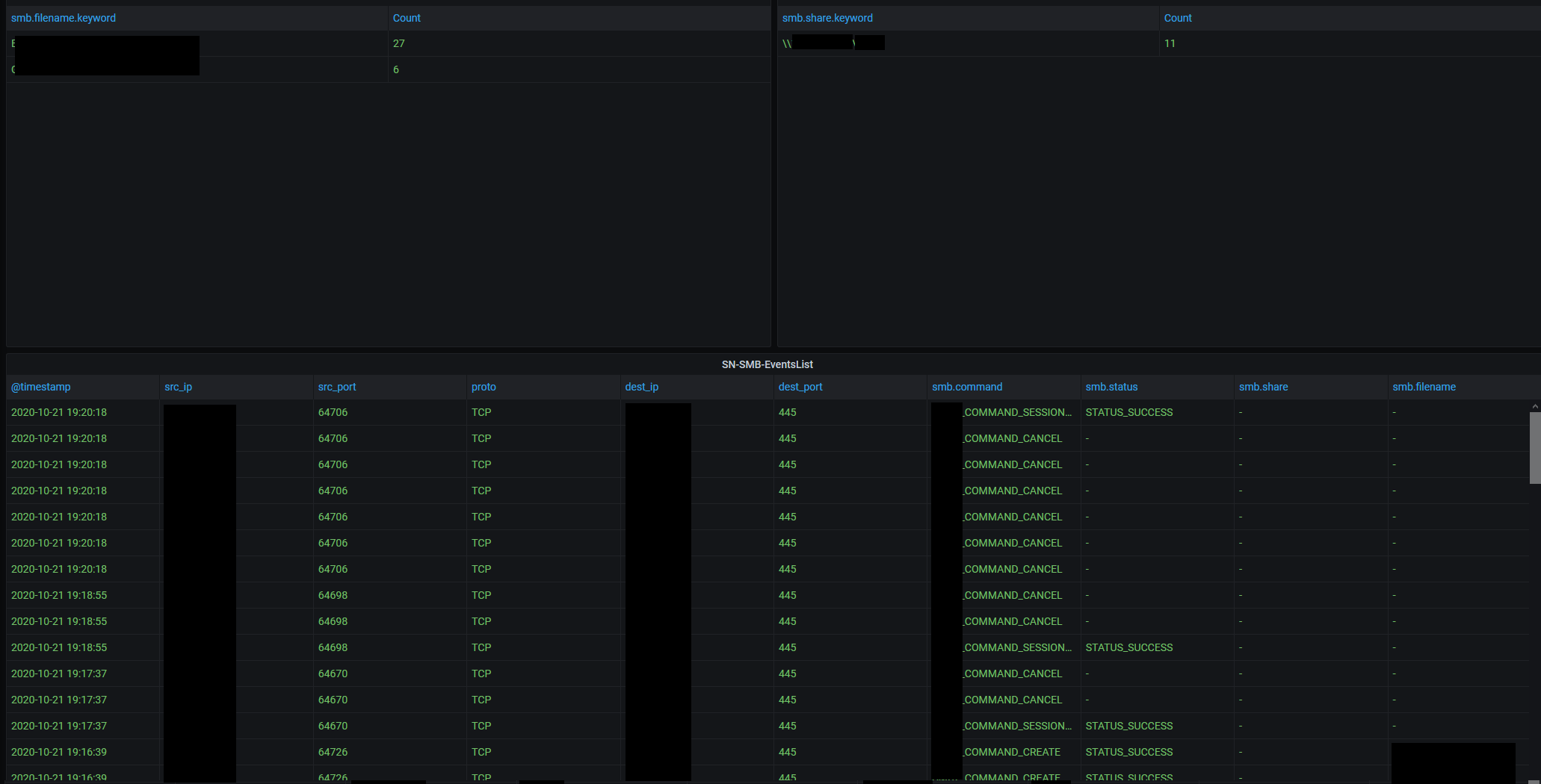 Dashboard SELKS for Grafana SN-SMB https://github.com/b4b857f6ee/selks_grafana_dashboard