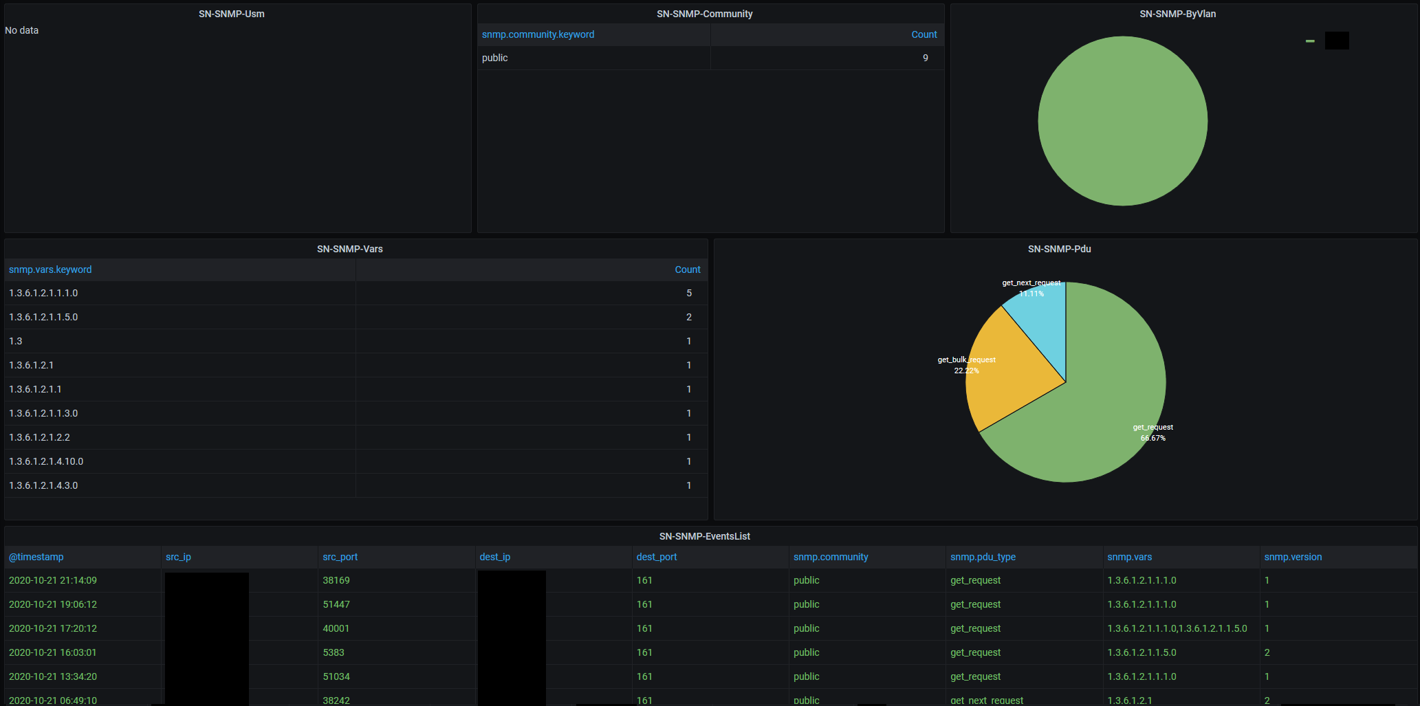 Dashboard SELKS for Grafana SN-SNMP https://github.com/b4b857f6ee/selks_grafana_dashboard