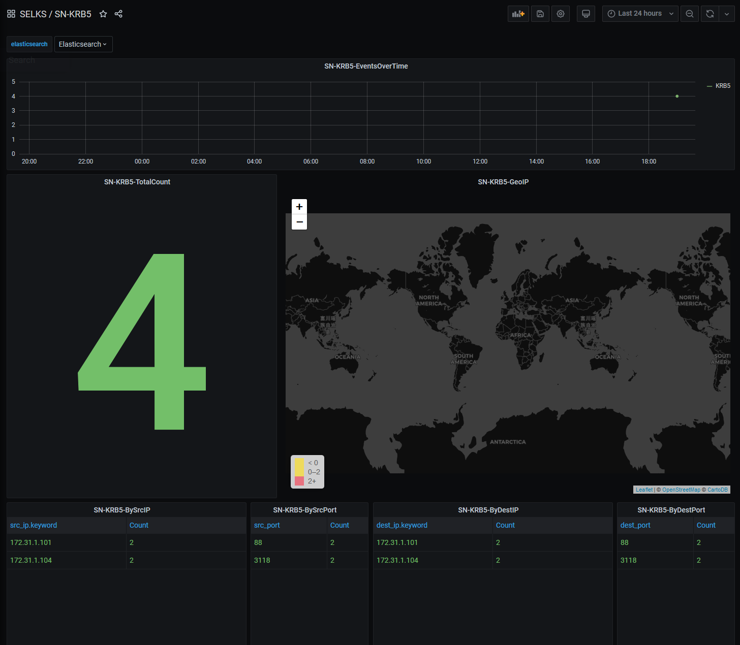 Dashboard SELKS for Grafana SN-KRB5 https://github.com/b4b857f6ee/selks_grafana_dashboard