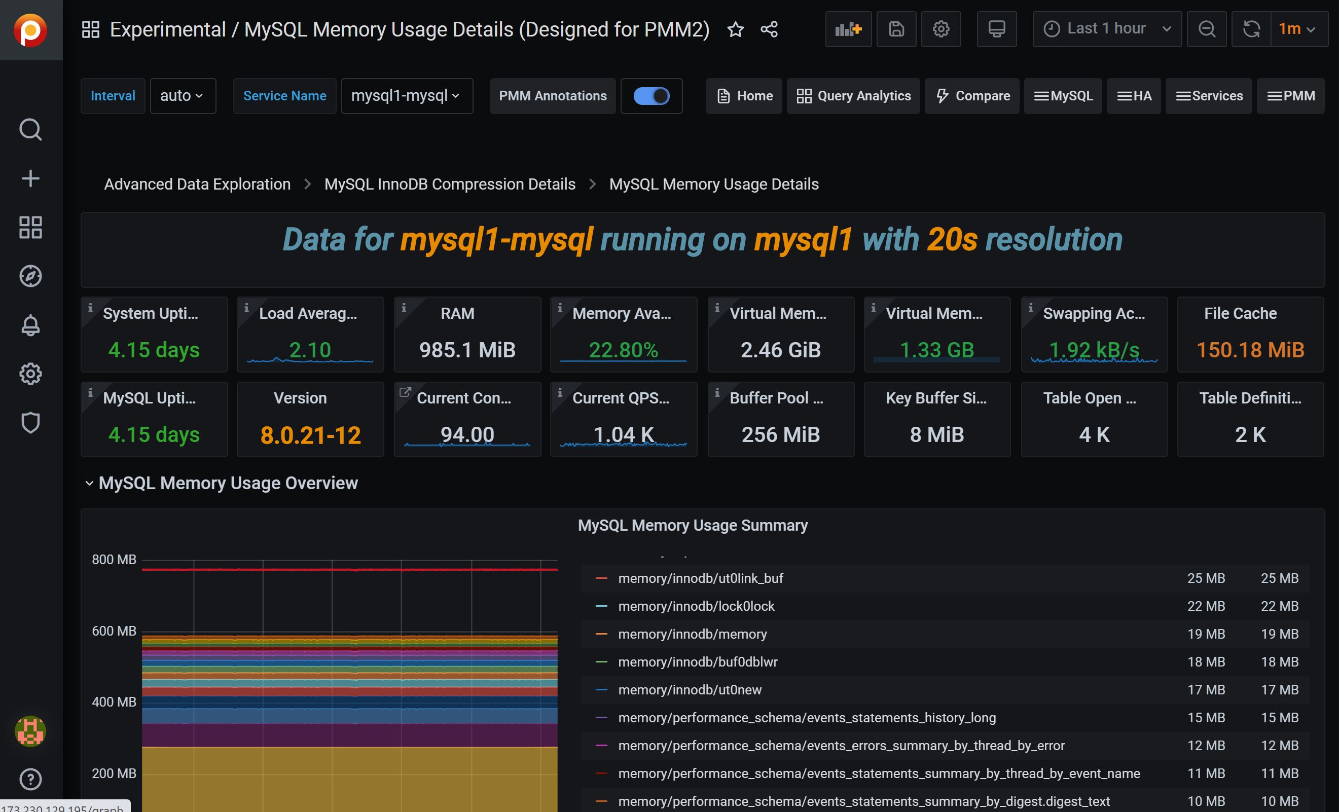 Collect MySQL Memory Usage Details using Custom Query Interface Available in Percona Monitoring and Management v2