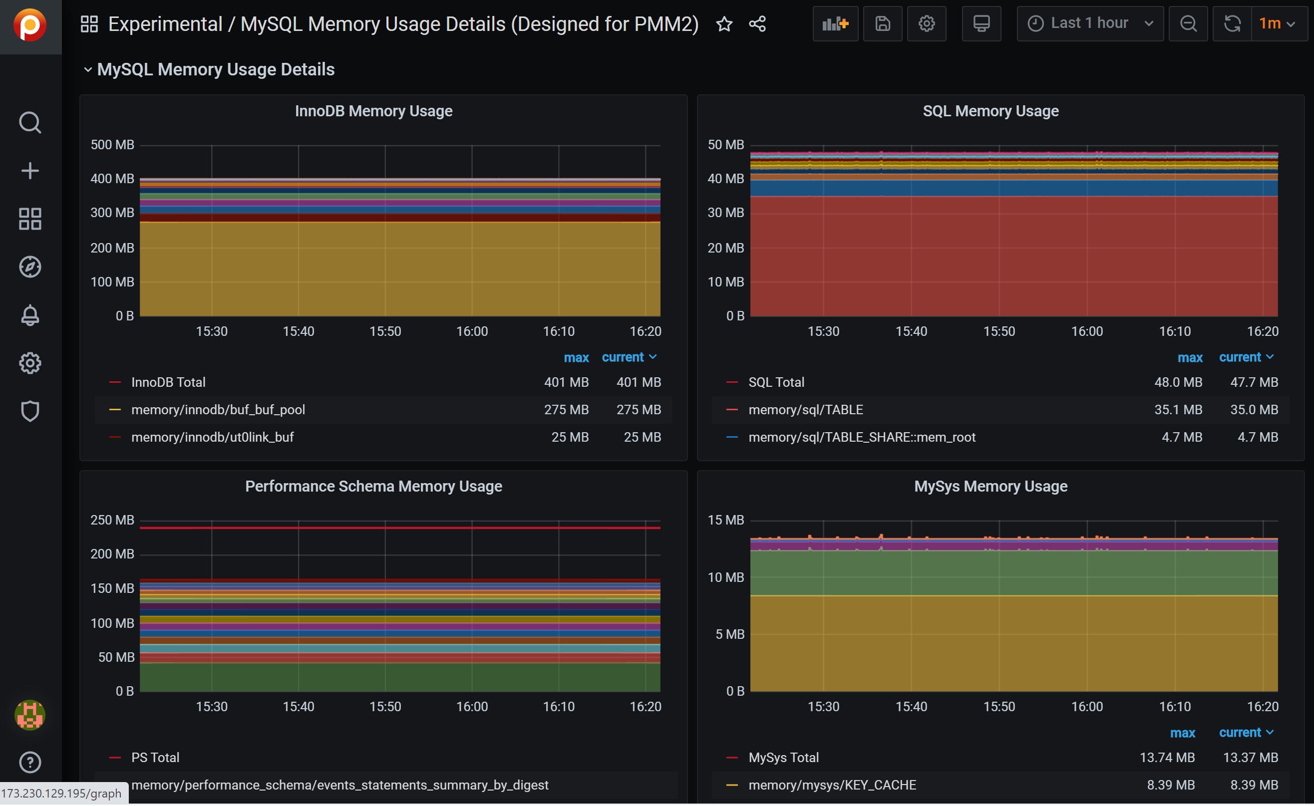 Must install https://github.com/Percona-Lab/pmm-custom-queries/blob/master/mysql/ps-memory-summary.yml to capture additional metrics required by this dashboard for full functionality