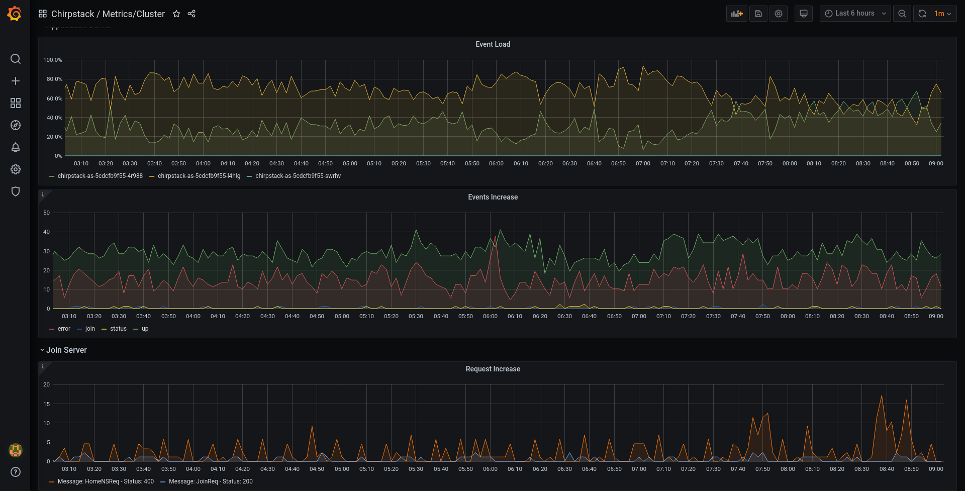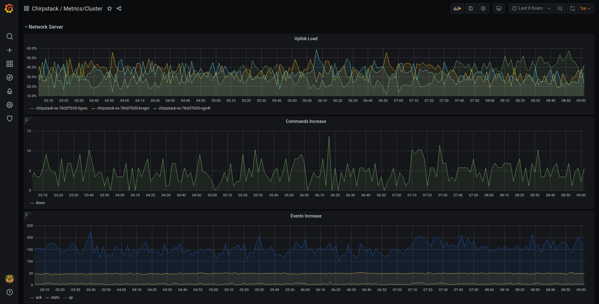 Displays metrics about the Chirpstack Network-Server, Application-Server and Join-Server