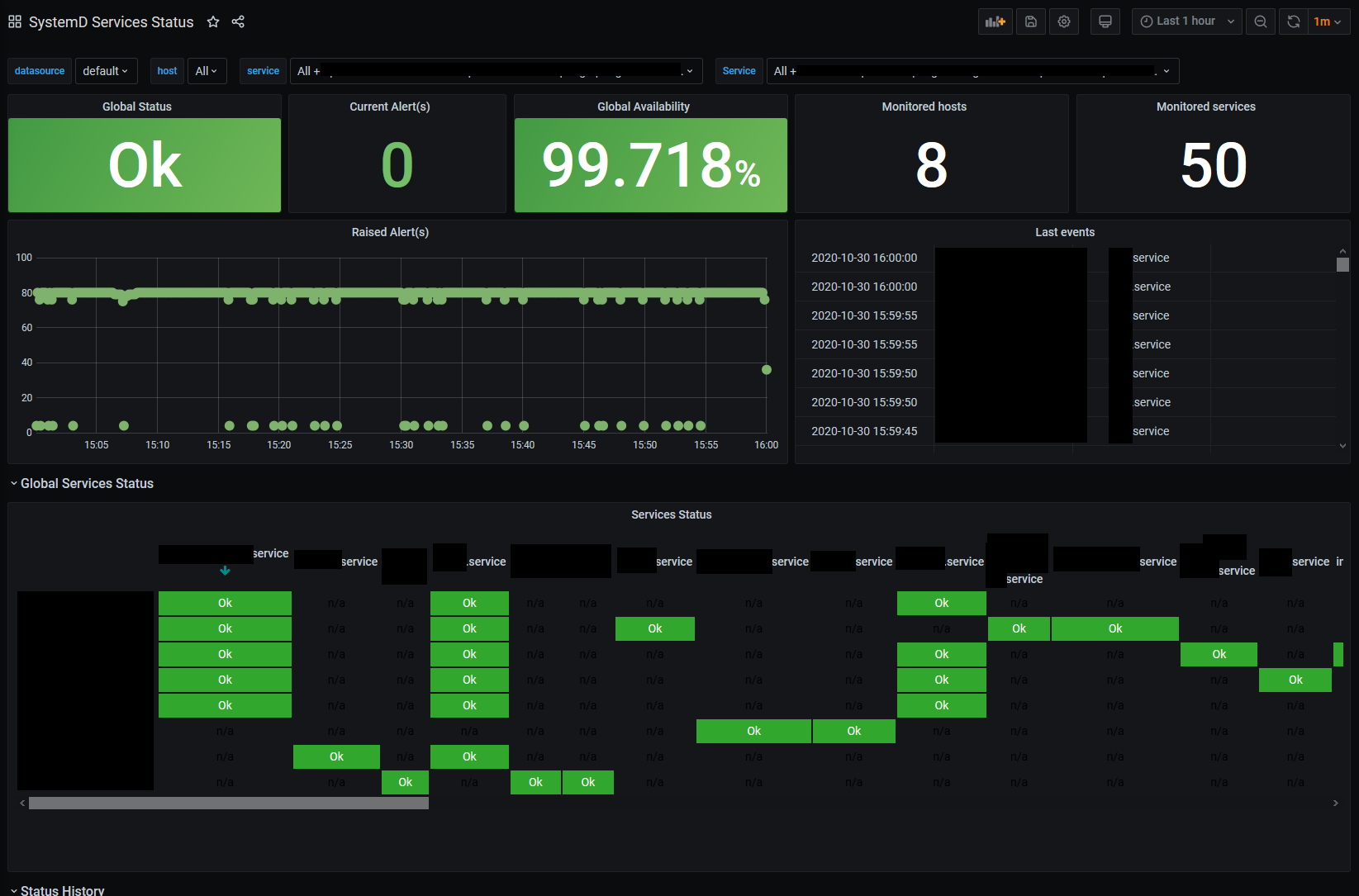 SystemD services status dashboard for the python script for Telegraf exec plugin.