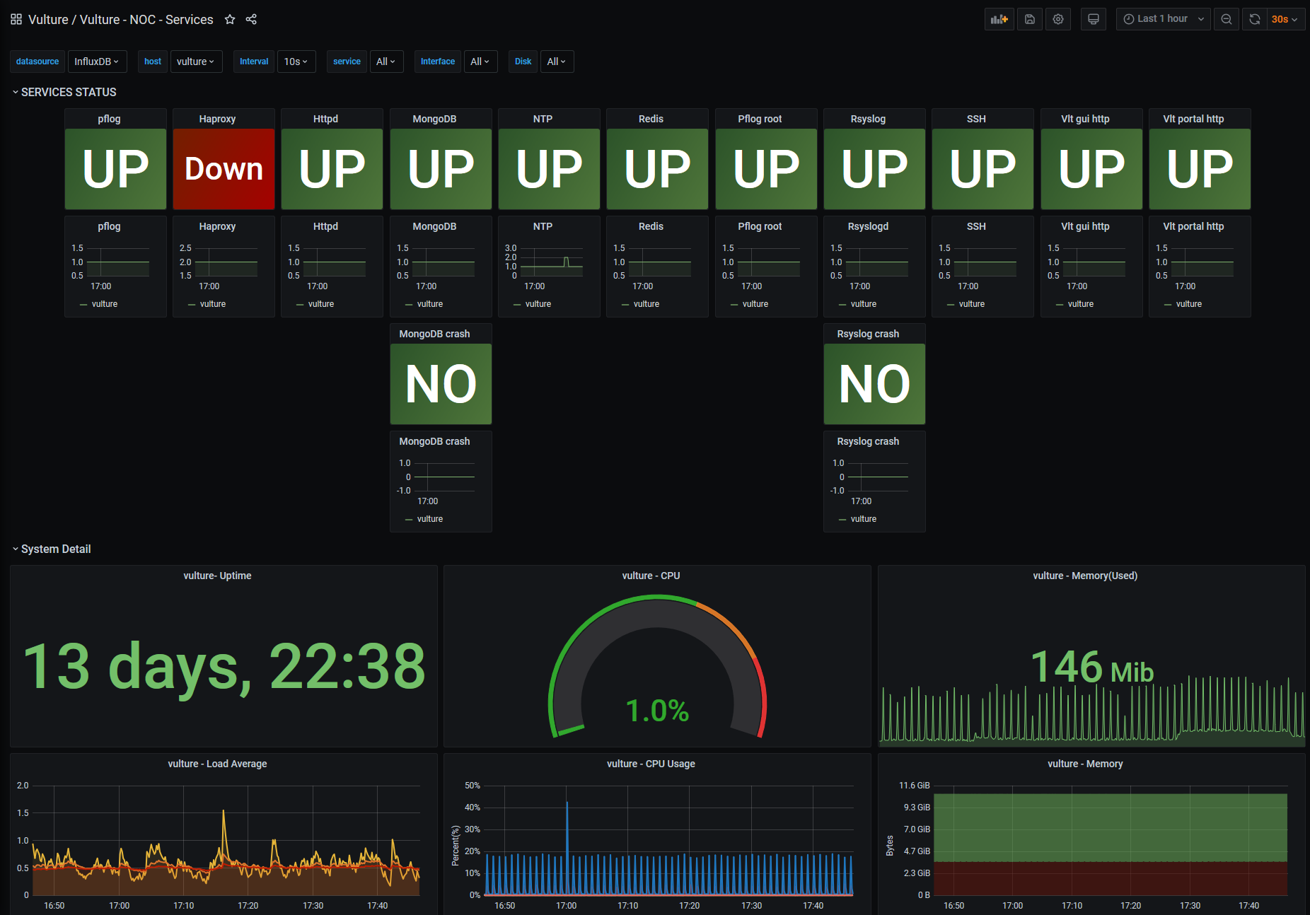 Check for more information : https://github.com/b4b857f6ee/Vulture3_grafana_dashboard