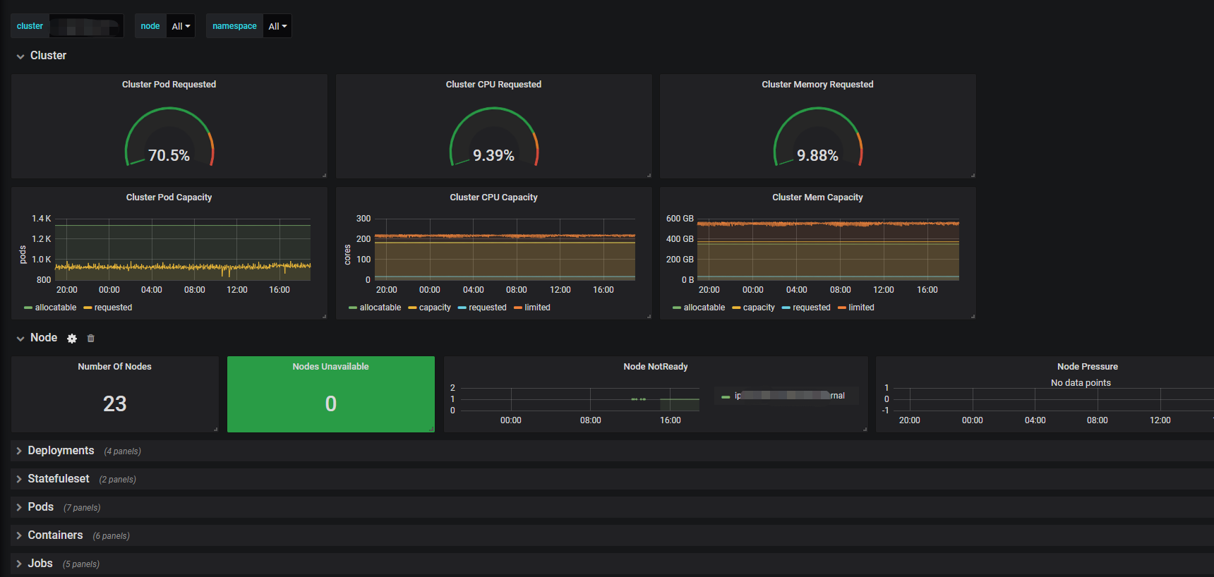 Monitor your Kubernetes deployment with prebuilt visualizations that allow you to drill down from a high-level cluster overview to pod-specific details in minutes.