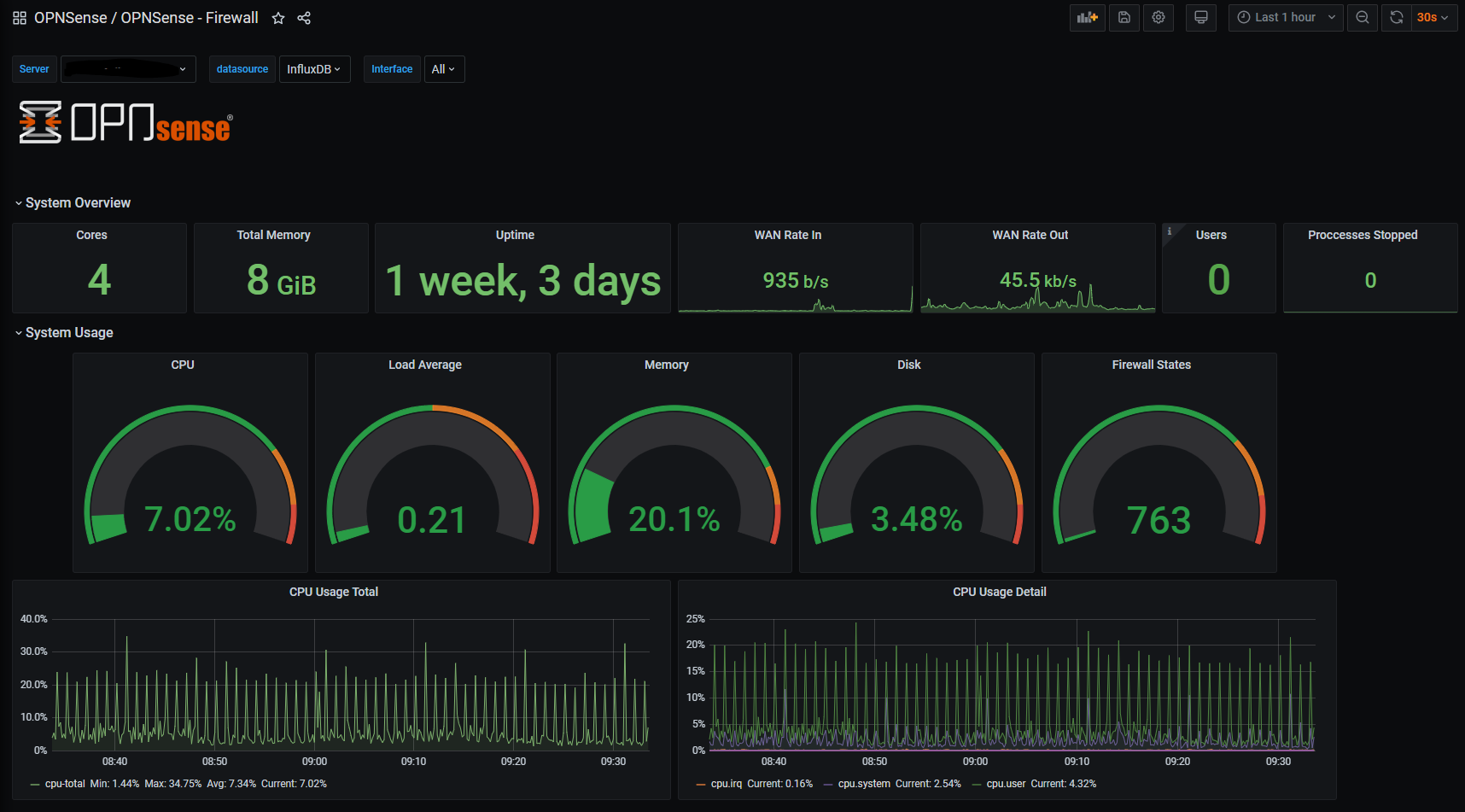 OPNSense Dashboard metrics from InfluxDB using Telegraf service