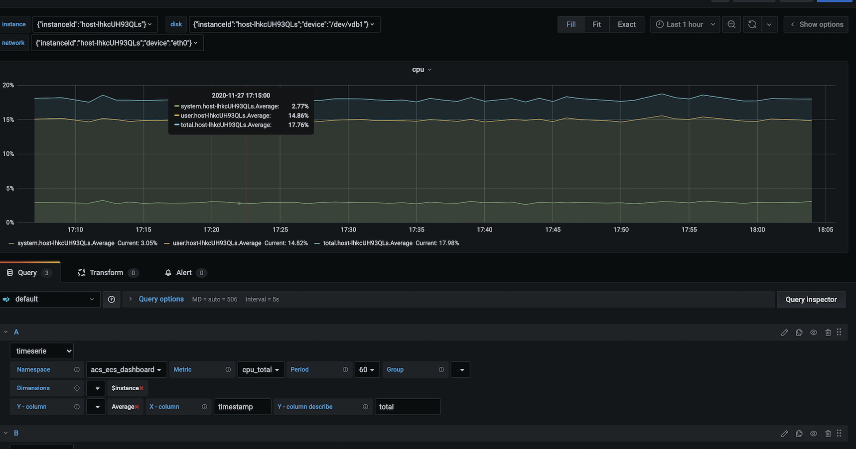 Alibaba Cloud Monitor For ECS Dashboard from CloudMonitor using aliyun-cms-grafana