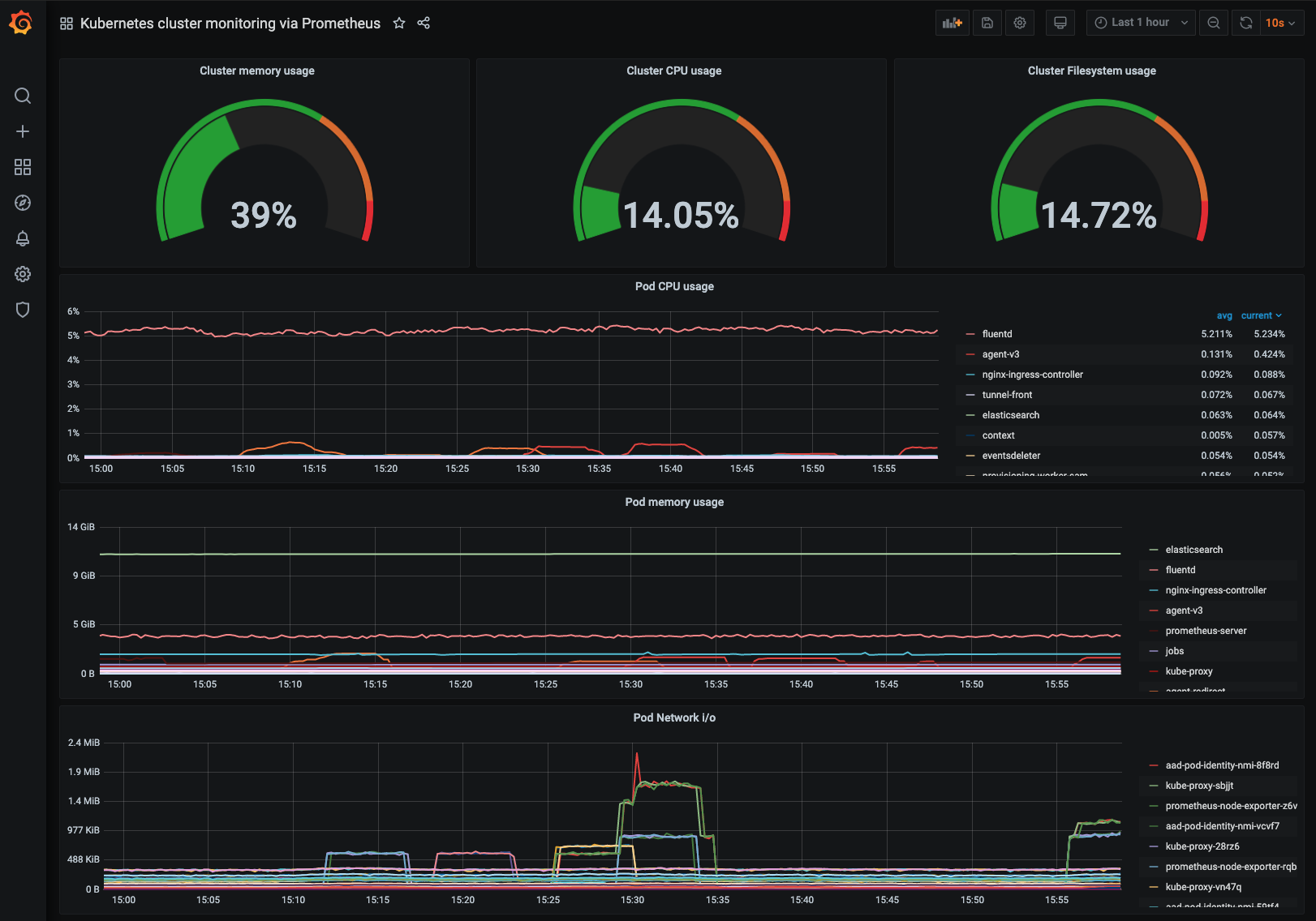 Monitor your Kubernetes deployment with prebuilt visualizations that allow you to drill down from a high-level cluster overview to pod-specific details in minutes.