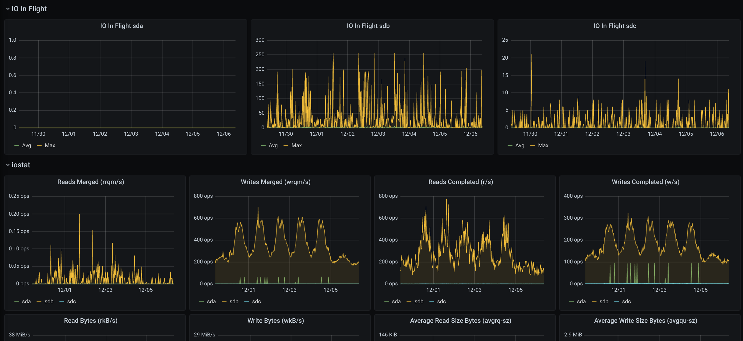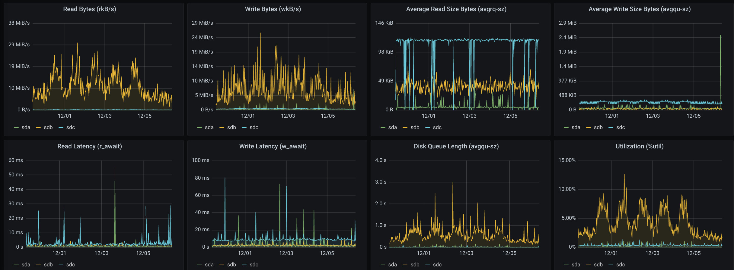 An example of the output of "iostat" using the Prometheus node_exporter.