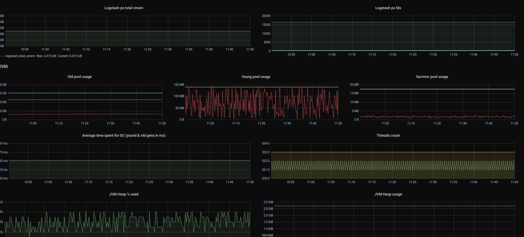The 9114 - Logstash dashboard uses the prometheus data source to create a Grafana dashboard with the graph and singlestat panels.