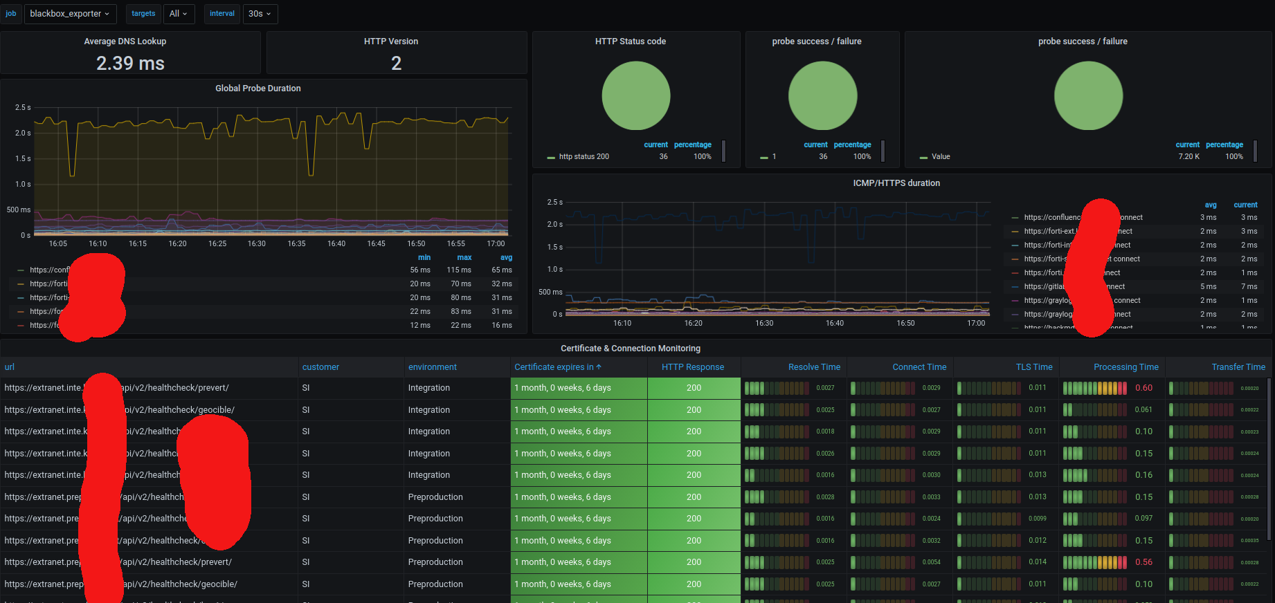 The 9115 - blackbox dashboard uses the prometheus data source to create a Grafana dashboard with the grafana-piechart-panel, graph, singlestat, table and table-old panels.