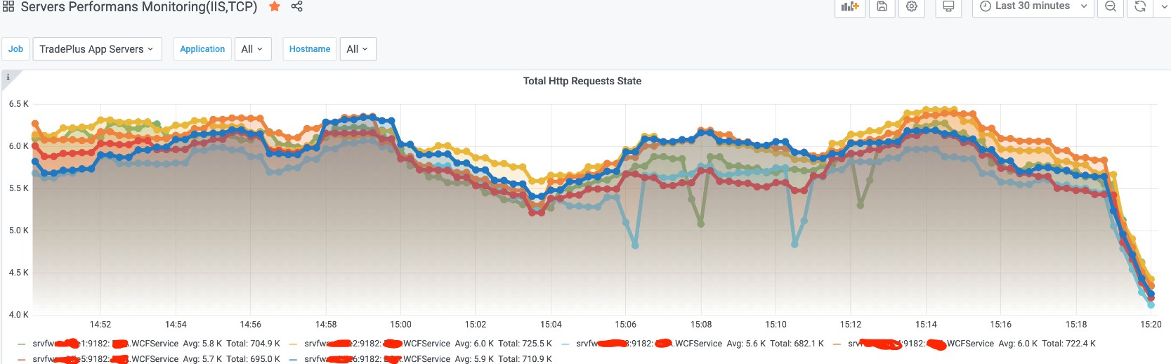 You can also view the average and total number of requests sent to IIS of each server during the time period you selected.