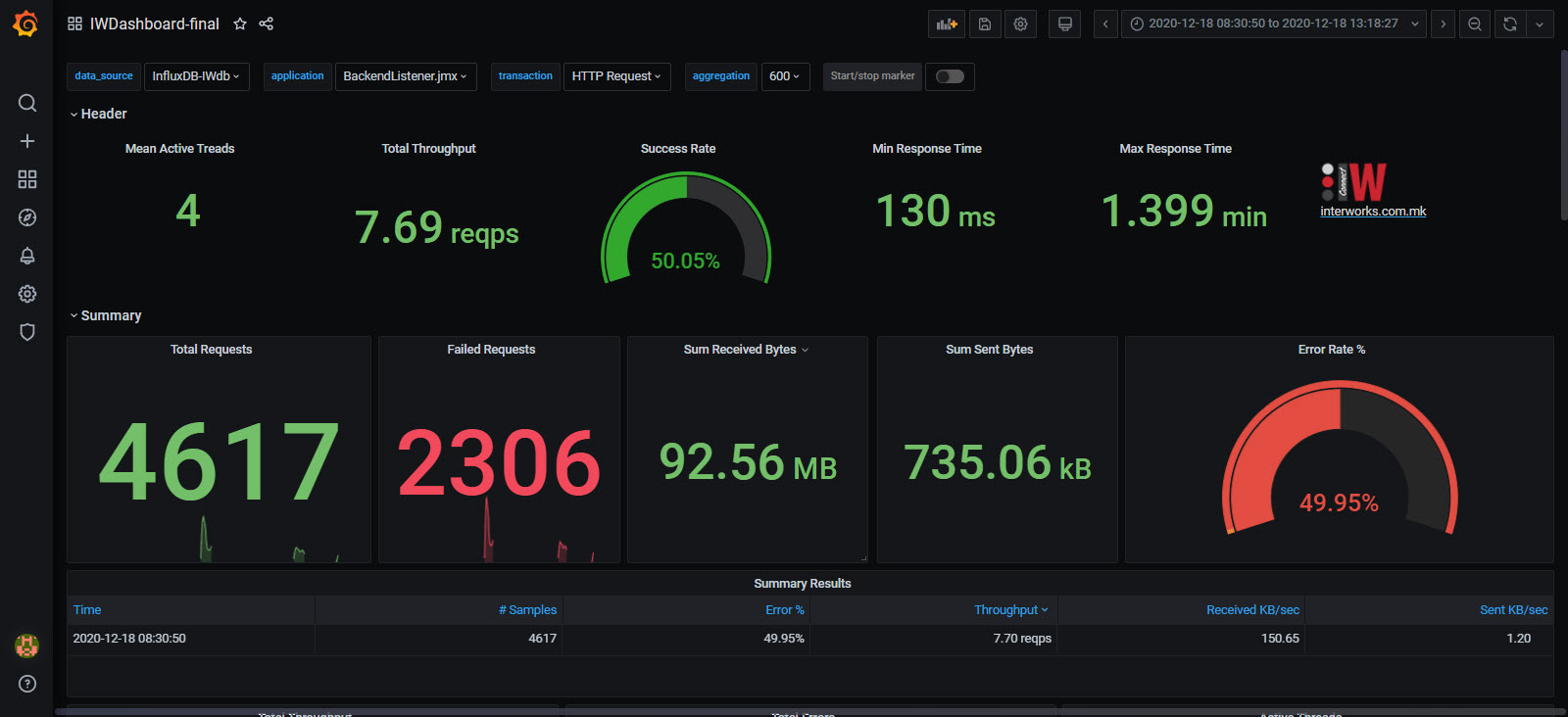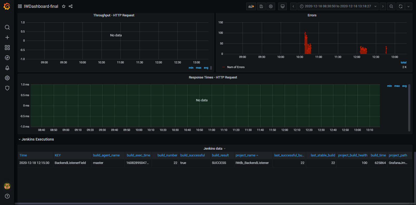 IW Dashboard for presenting JMeter and Jenkins metrics of test executions