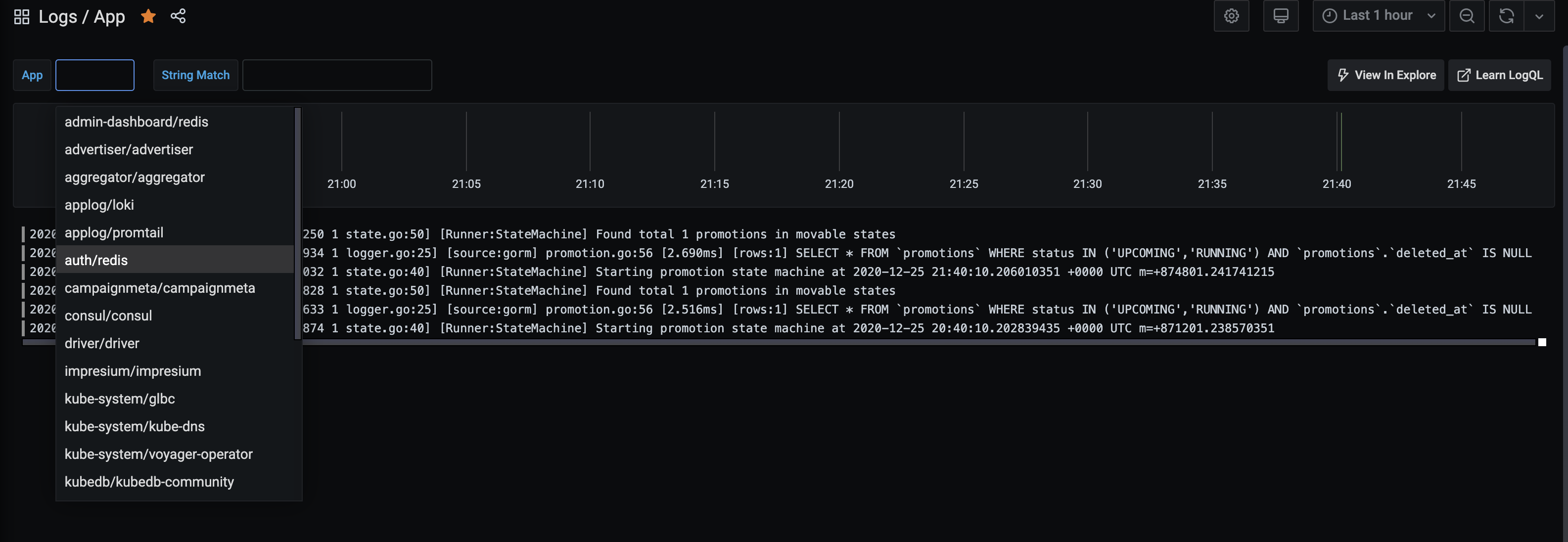 Creates a dashboard for Loki Logs Viewer, with options for viewing logs for kubernetes app.