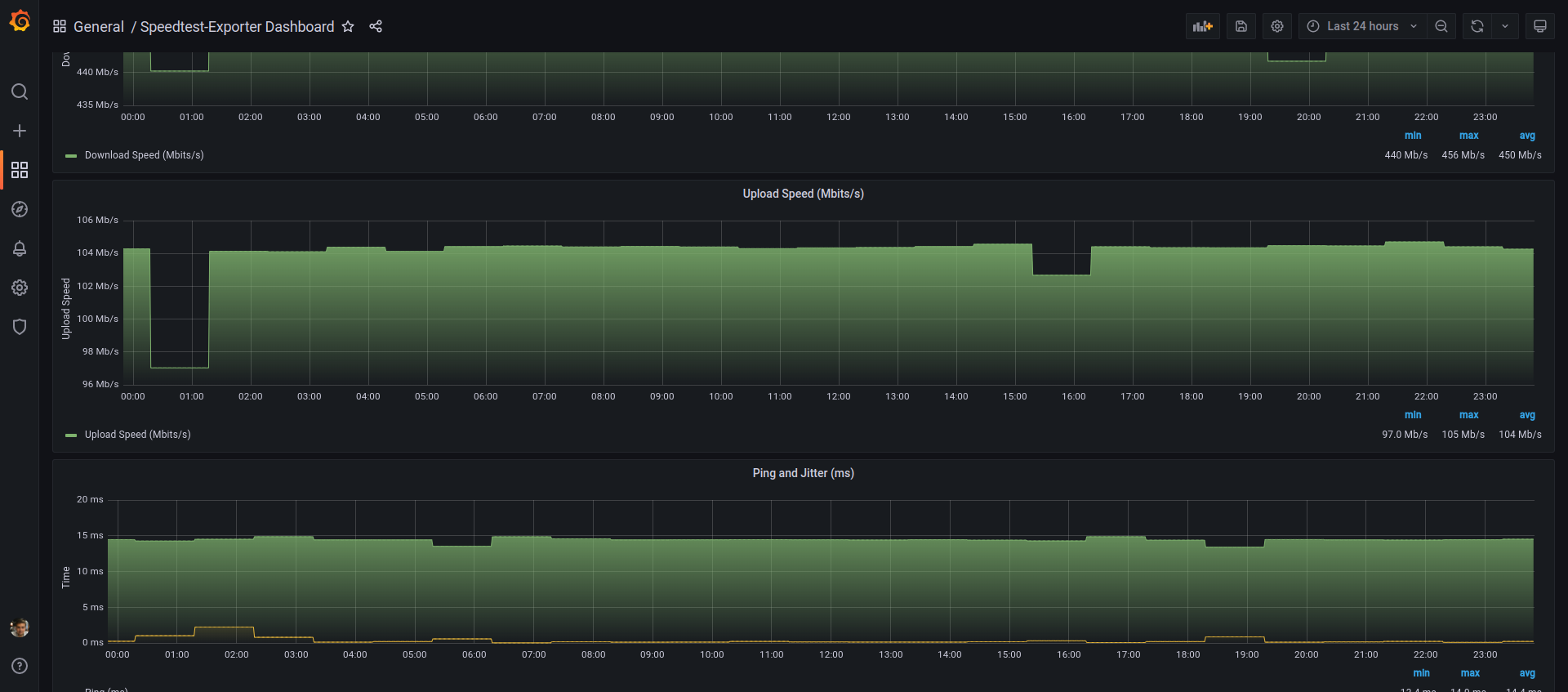 Dashboard for Speedtest Exporter https://github.com/MiguelNdeCarvalho/speedtest-exporter