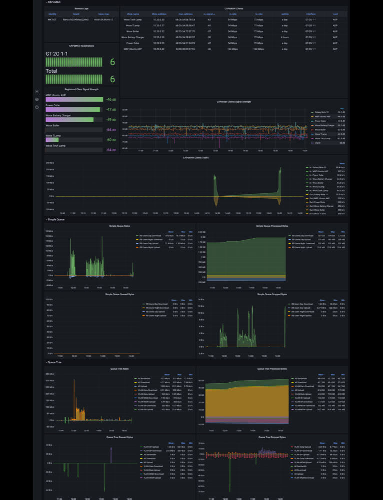 This dashboard is now a part of MKTXP-Stack, a dockerized monitoring stack to have multiple Mikrotik RouterOS devices monitored with least amount of configuration.