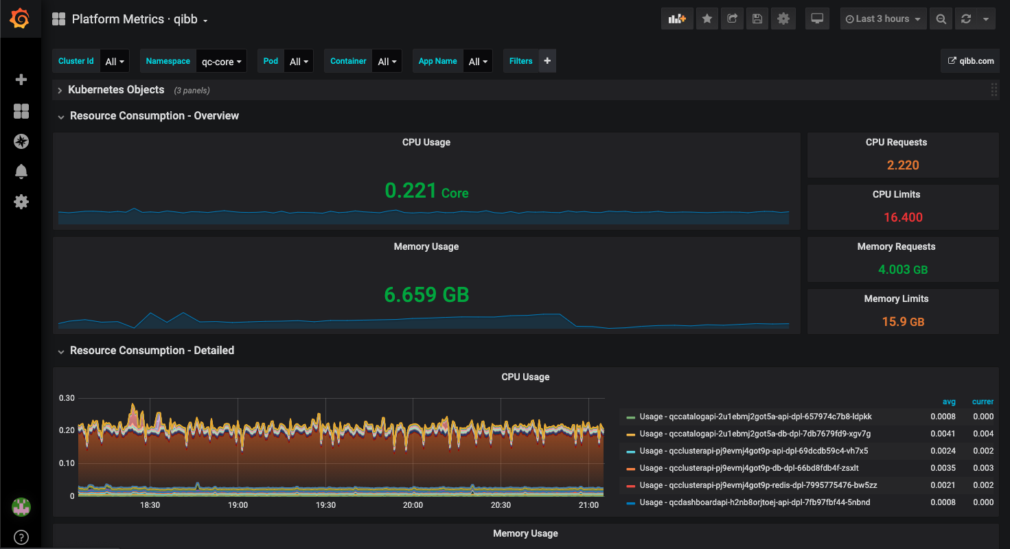 Monitor your qibb platform and all deployed applications across multiple clusters.