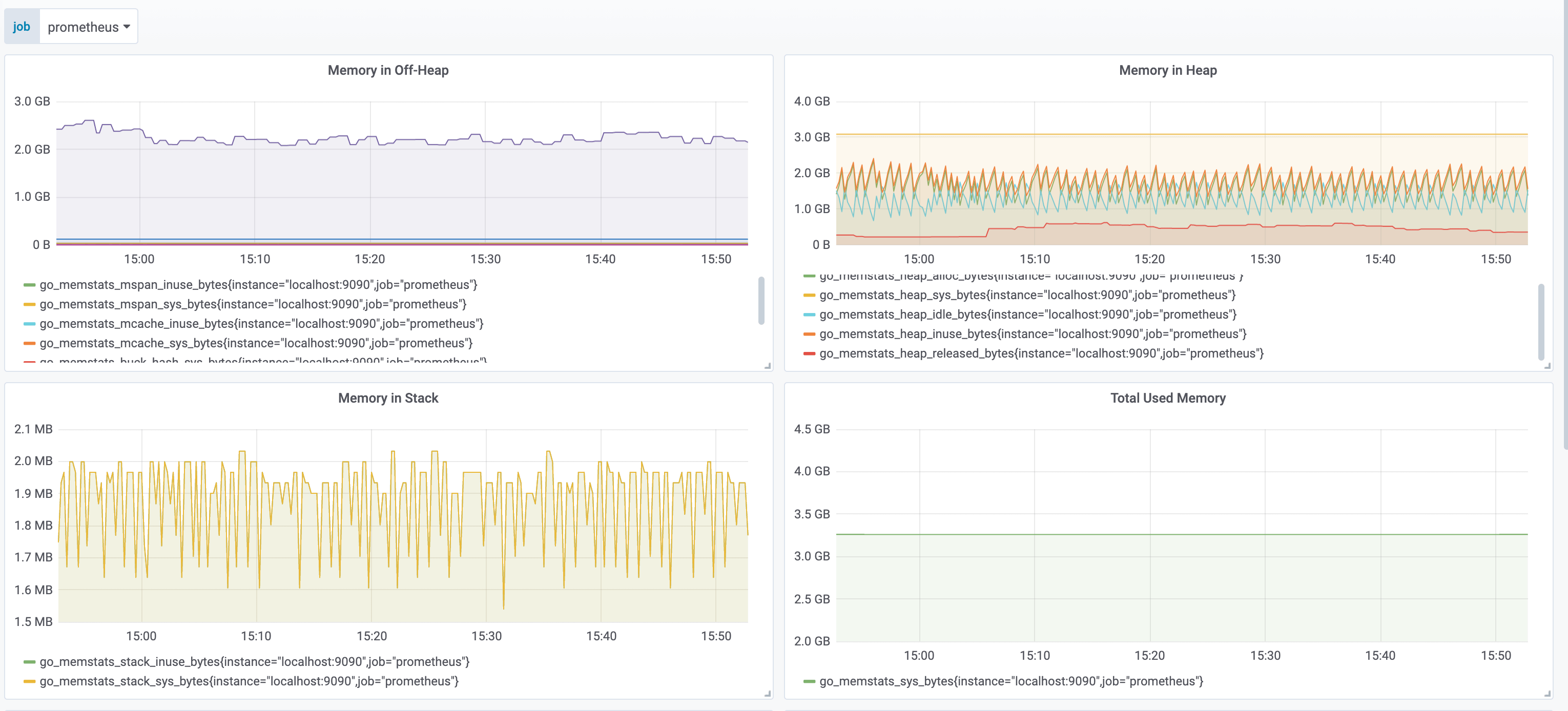 取自runtime.ReadMemStats() .HeapIdle - go_memstats_heap_inuse_bytes: Number of heap bytes that are in use.