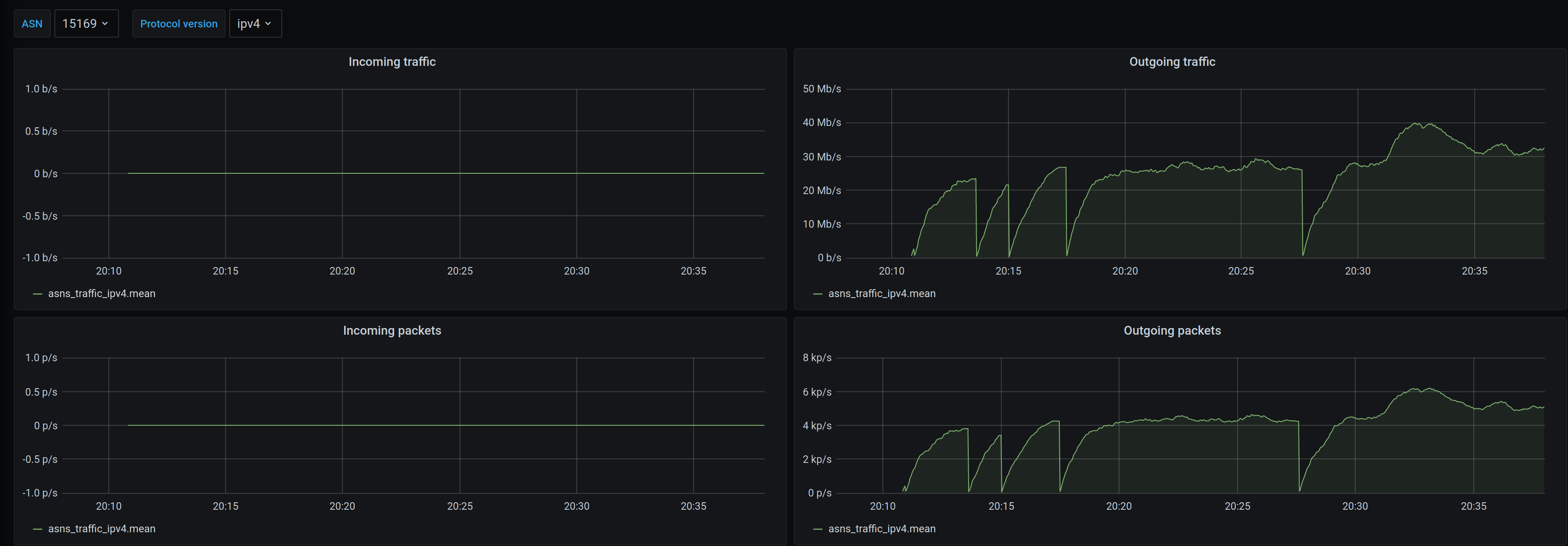 It needs following options enabled on FastNetMon side: sudo fcli set main enable_asn_counters enable sudo fcli set main average_calculation_time_for_asns 60 sudo fcli set main asn_lookup enable sudo fcli commit
