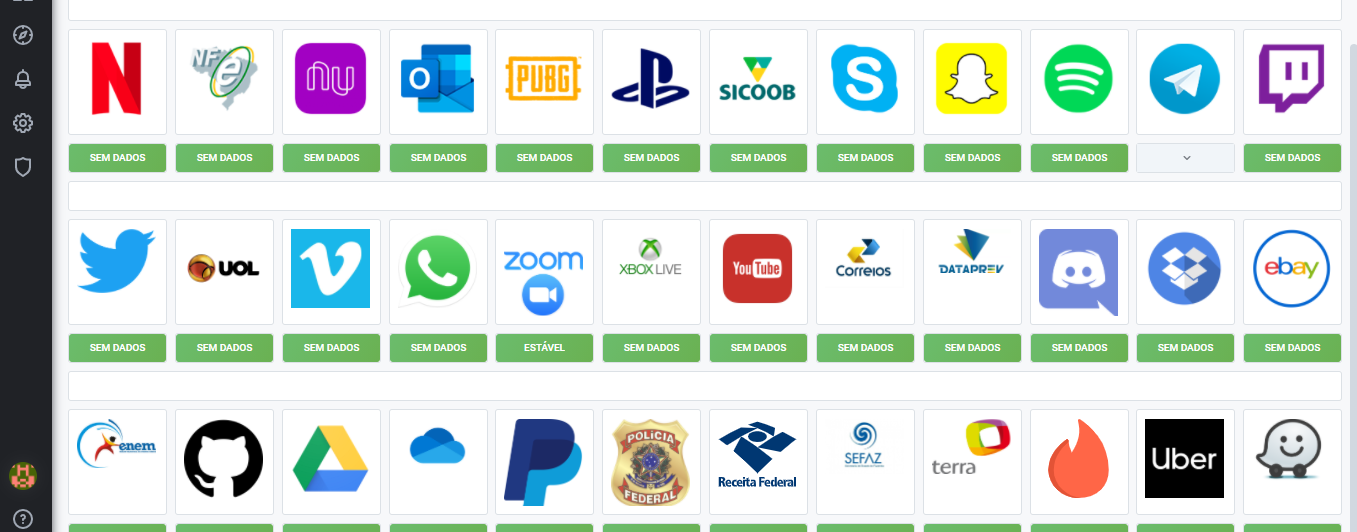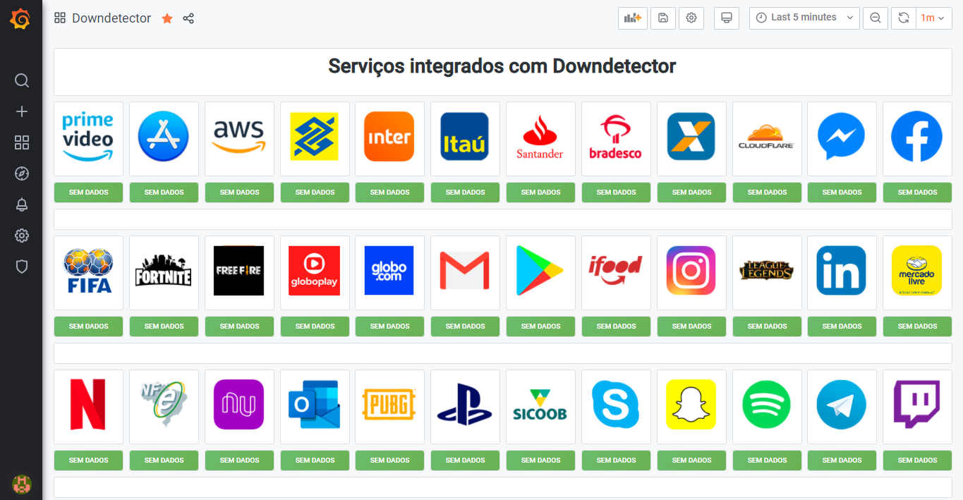 Template com dados trazidos pelo downdetector... necessário realizar a integração com o serviço.