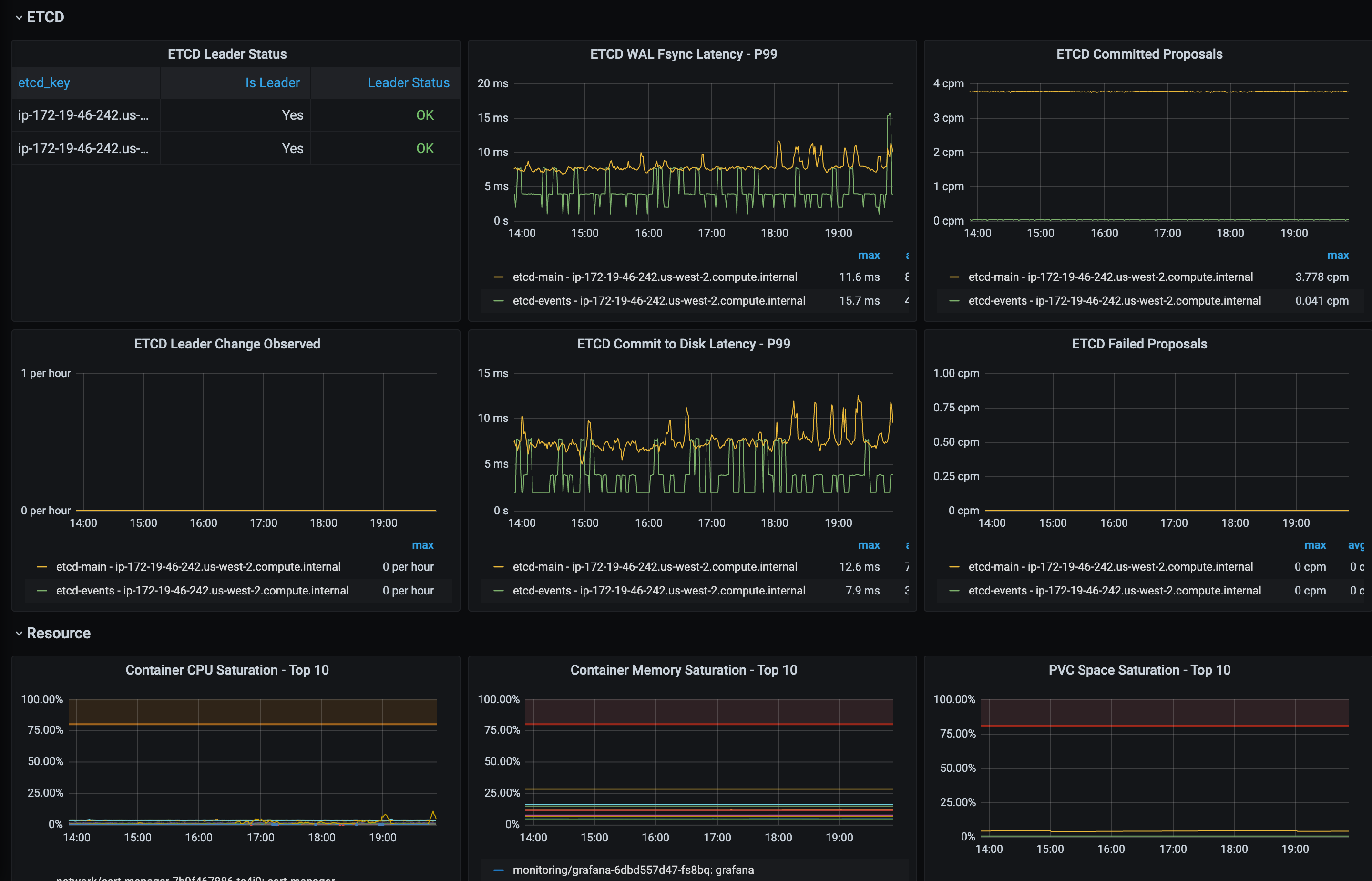 The data used in the dashboard come from the components below, assuming no relabelling were done on them. If you don't have some of them installed, or if you have configured relabeling on them, you might have to tune the dashboard to your own need.