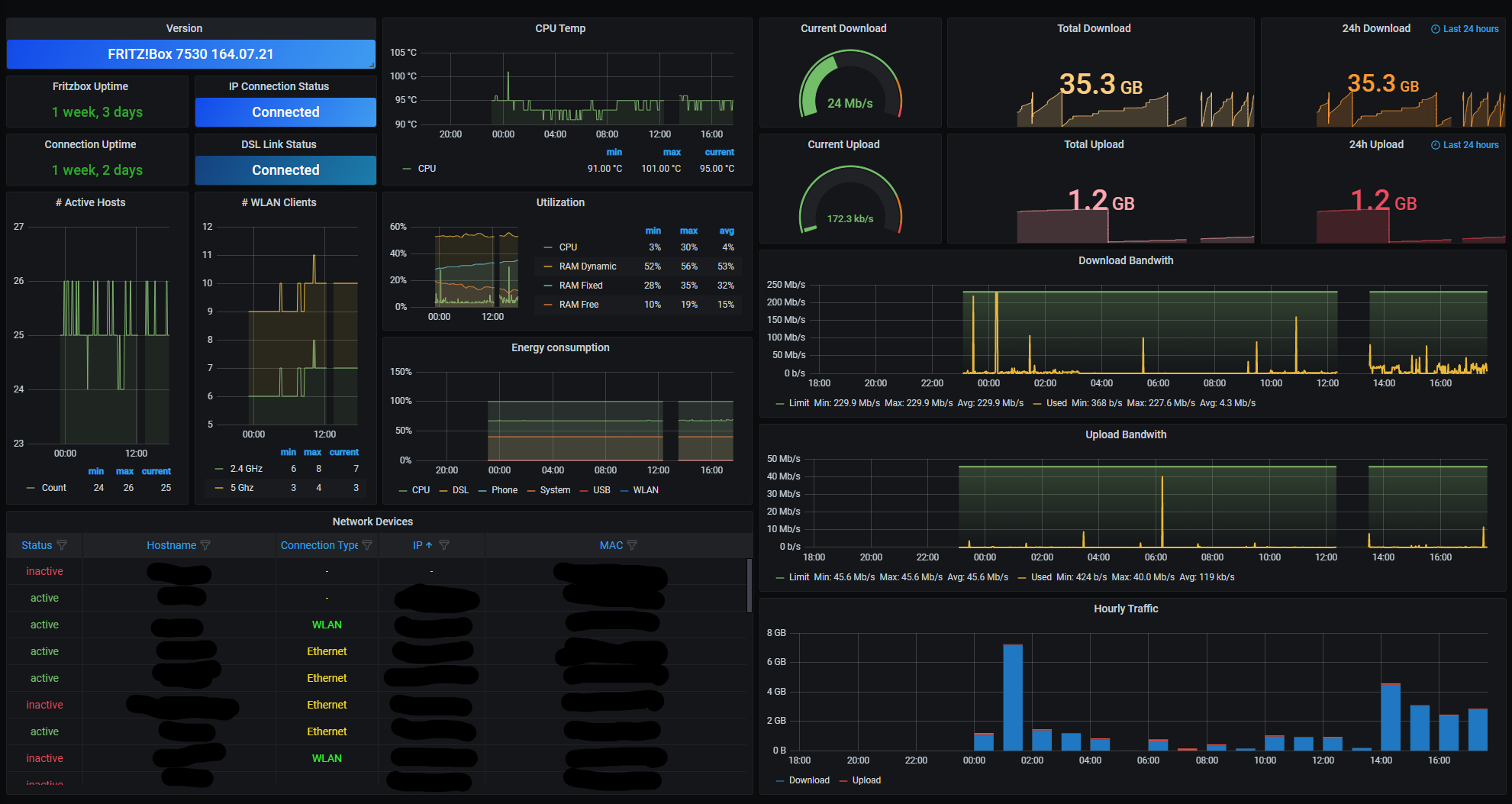 Using this exporter: https://github.com/sberk42/fritzbox_exporter