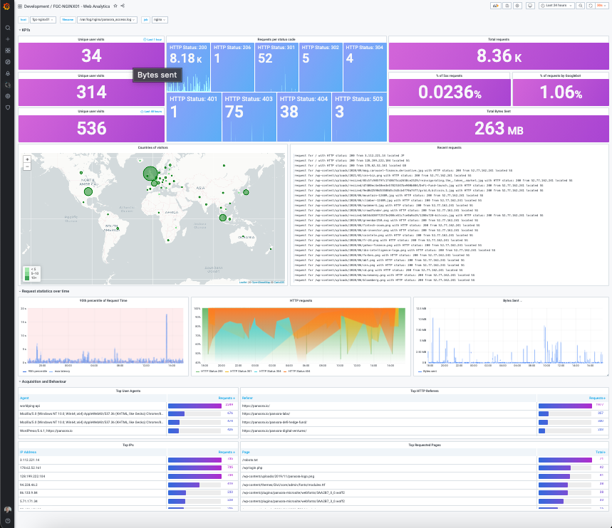 - Removed further browser and crawler bot statistics from relevant panel - to add these back in edit the panel and remove below from query on each panel.