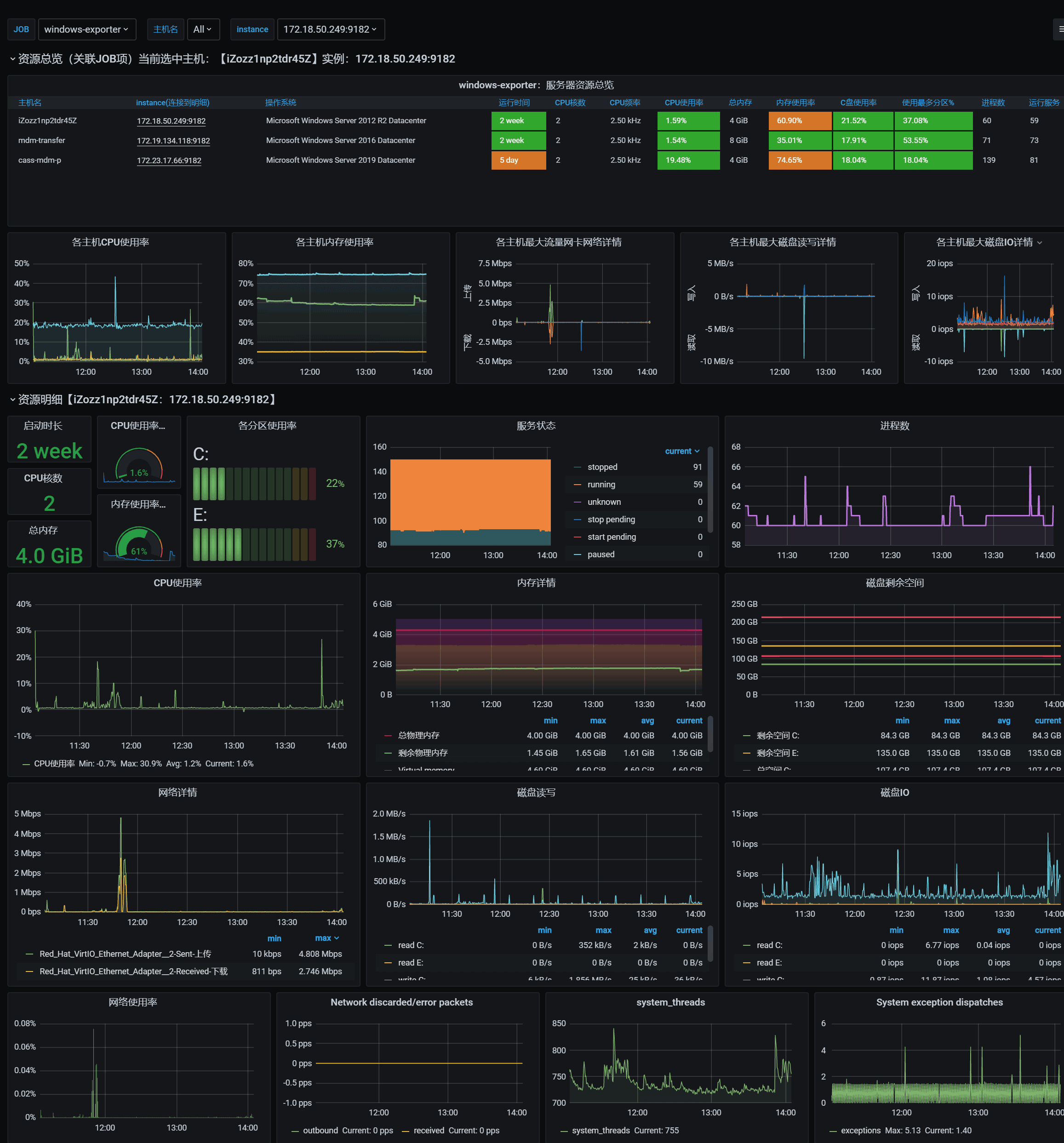 Windows Prometheus monitors the Kanban display, adds the resource summary display, and optimizes the detailed display. Update supports windows_exporter 0.13.0.