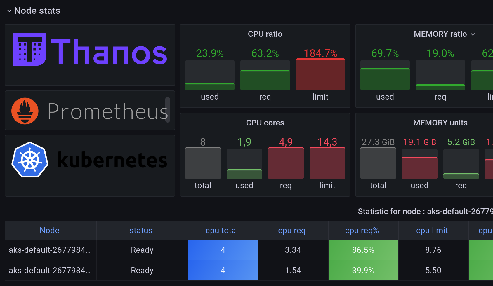 It provides an overview of your k8s resources at cluster/nodes level and stats for each containers.