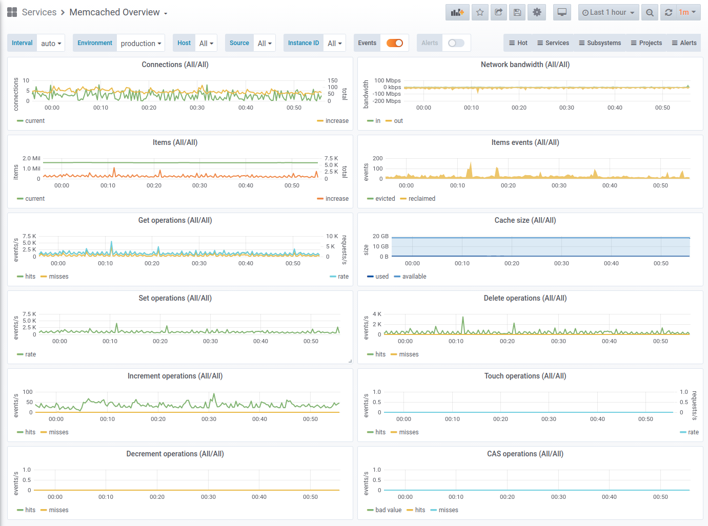 Easily monitor Memcached, the distributed, in-memory key-value store, with Grafana Cloud's out-of-the-box monitoring solution.