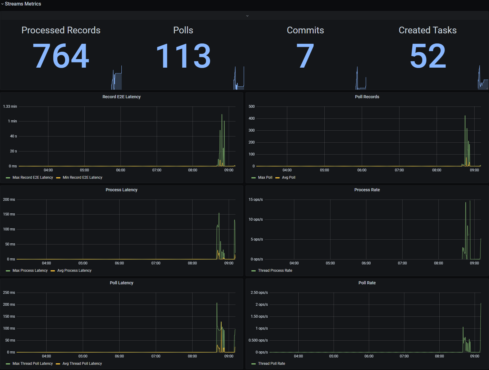 kafka_streams_kafka_metrics_count_count. - If prometheus is scraping correctly, the dashboard should work.