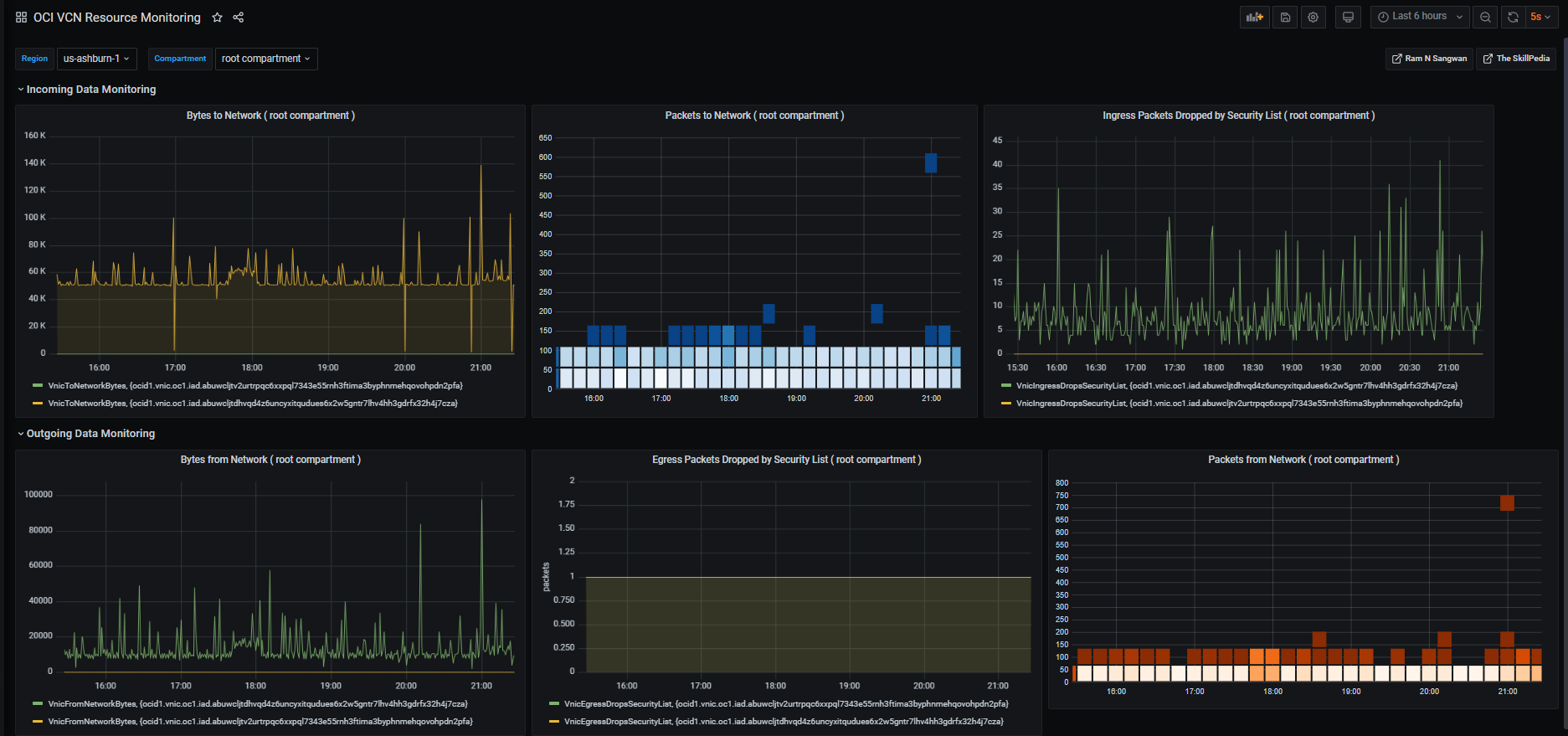 Oracle Cloud VCN Monitoring. This dashboard help you in monitoring your VCN resources of OCI. Created by Ram N Sangwan