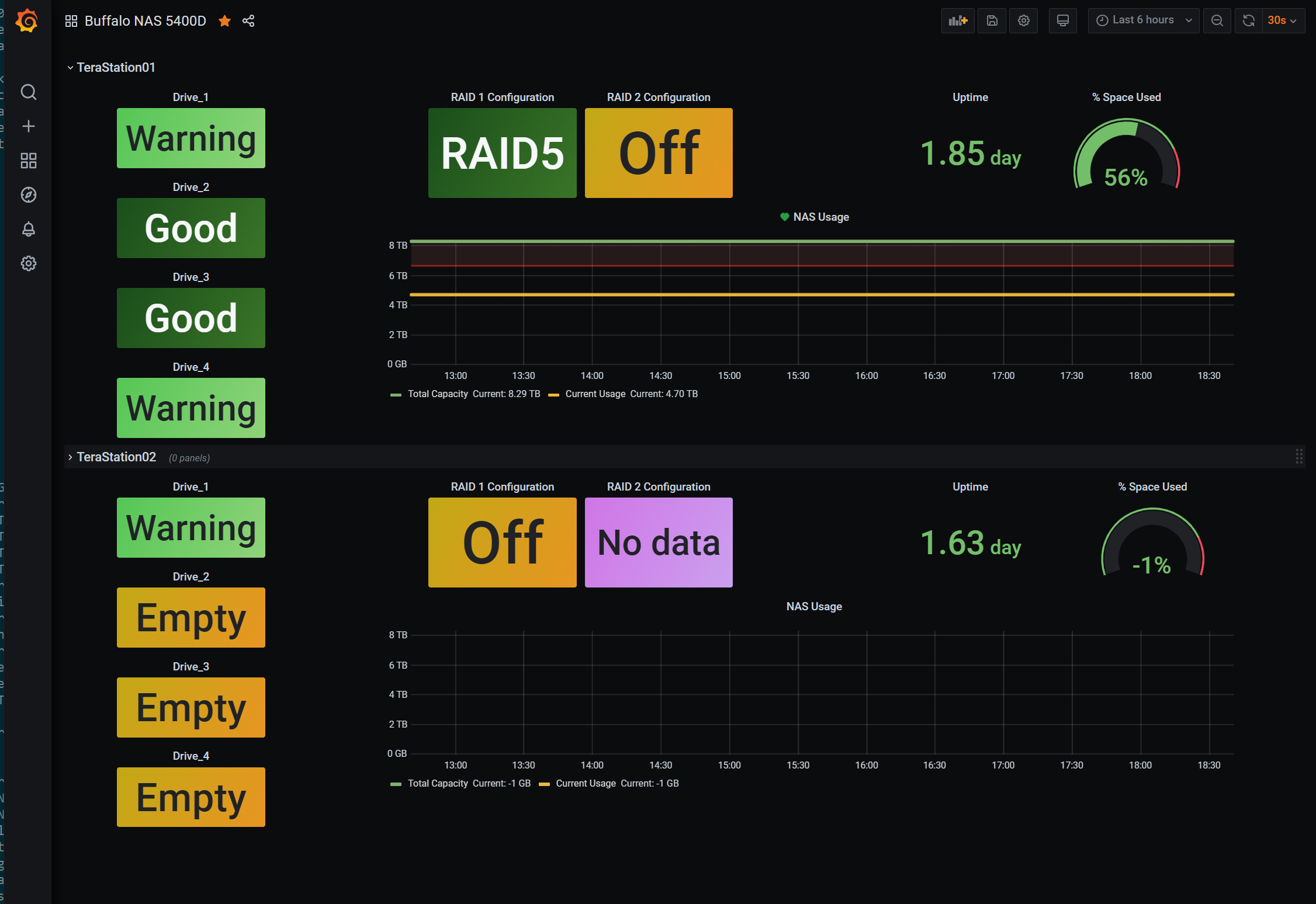 Simple Dashboard using SNMP to monitor the disk and storage usage of my HomeLab NAS systems.