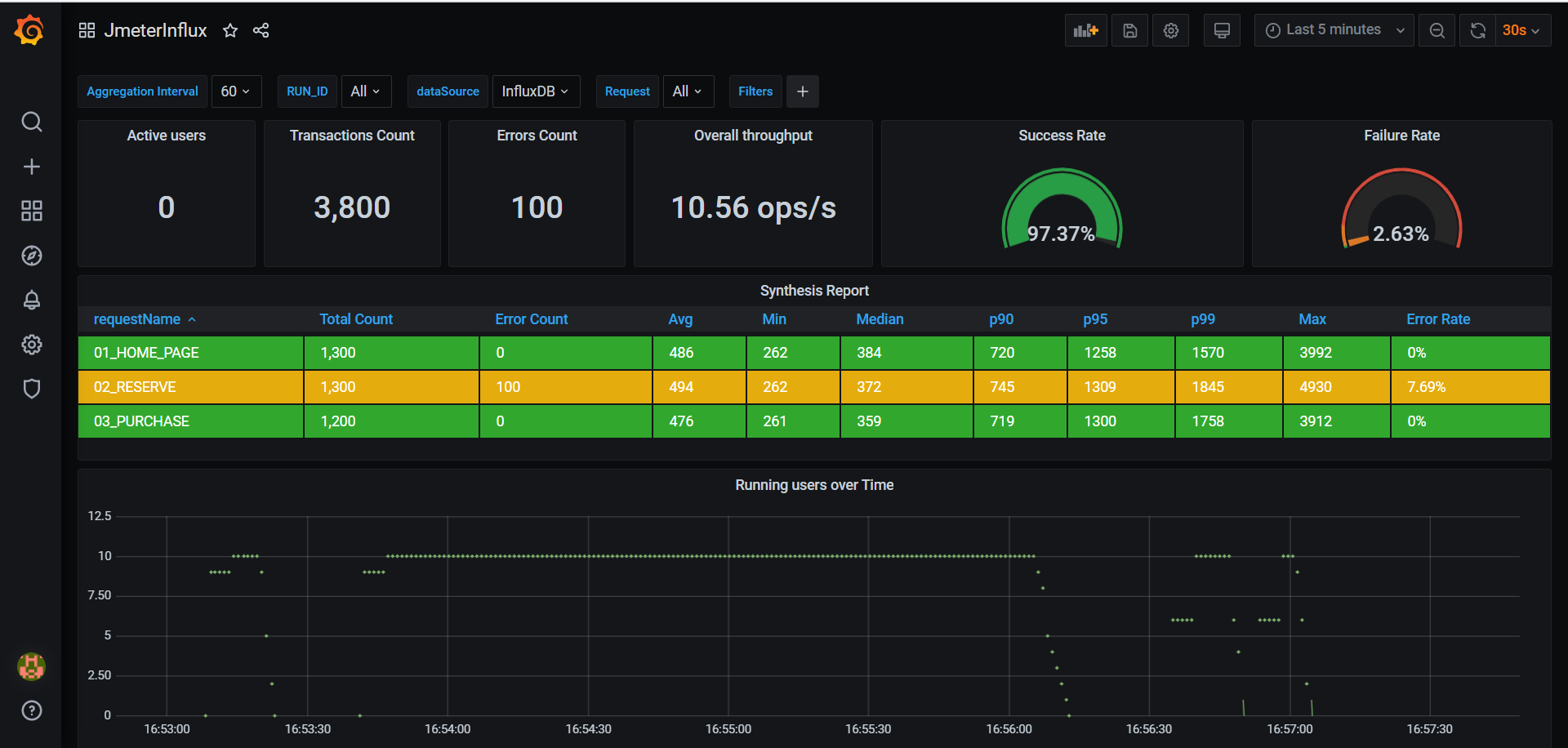 Monitor your Apache JMeter load test in real time with InfluxDB and Grafana. Get overall summary, errors details and particular transaction response times.