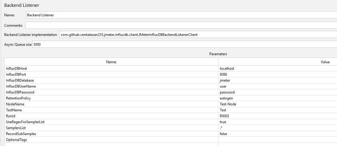 Create your Test Plan and add the InfluxdbBackendListernerClient to the test plan.
