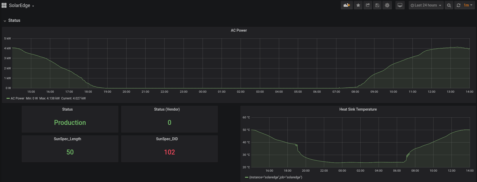 A simple dashboard which shows all the metrics from https://github.com/dave92082/SolarEdge-Exporter