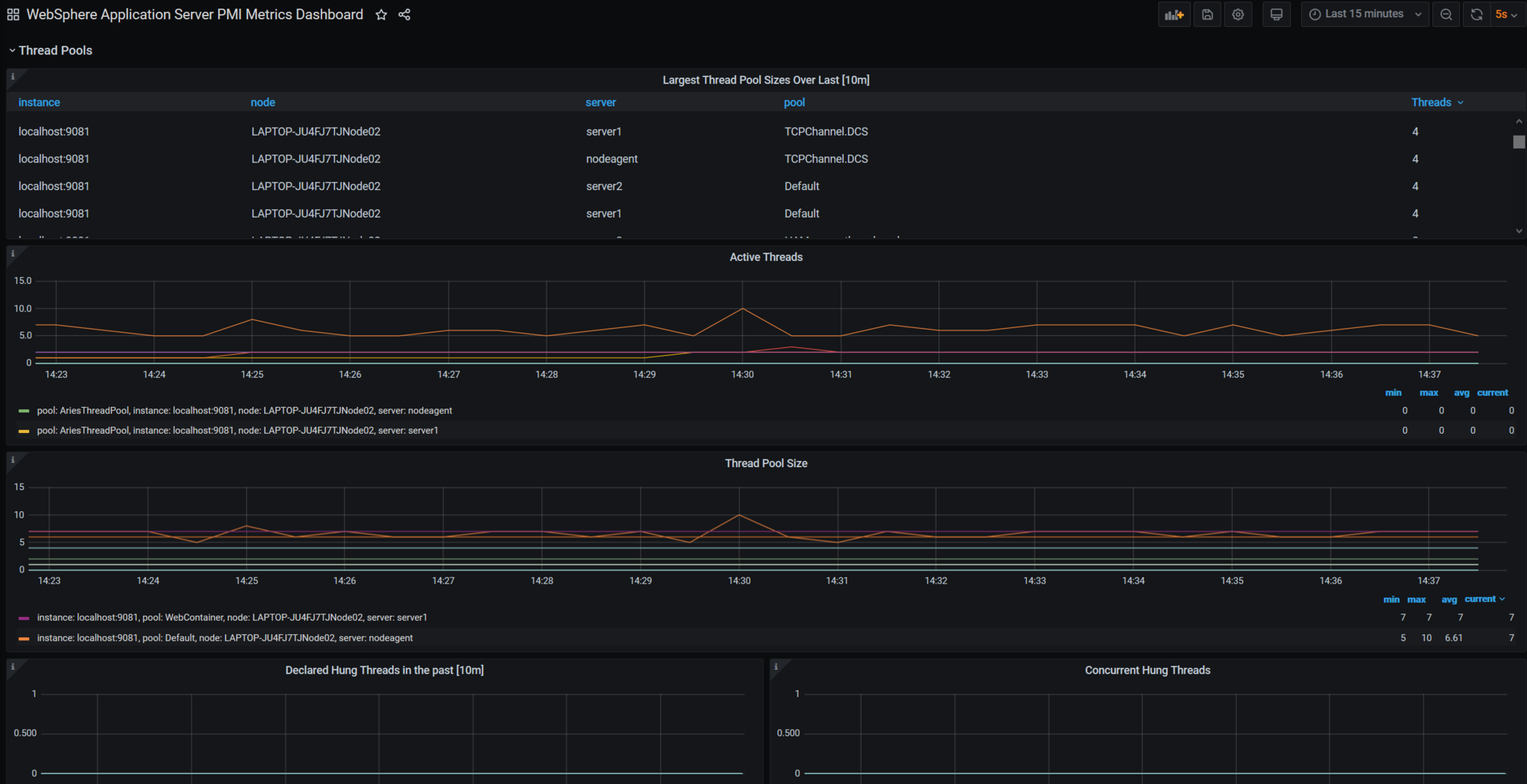 Starting in WebSphere Application Server 9.0.5.7 and 8.5.5.20 the IBM WebSphere team introduced a new capability where the statistical MBean data gathered by Performance Monitoring Infrastructure (PMI) is collected to produce metrics in Prometheus exposition format. This new capability allows the WebSphere Application Server topology to be monitored effectively using Prometheus and Grafana.