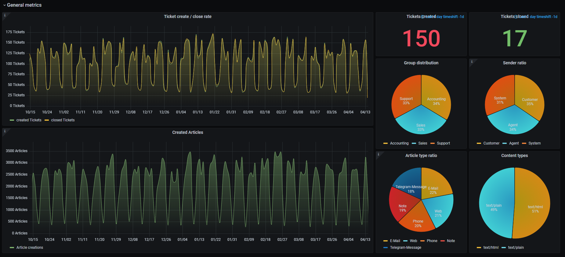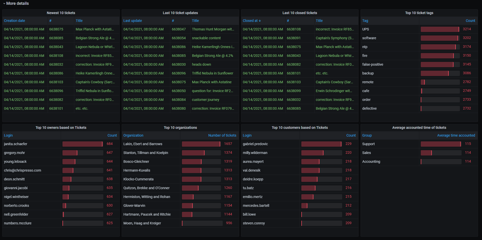Sample dashboard for Zammad Tickets.