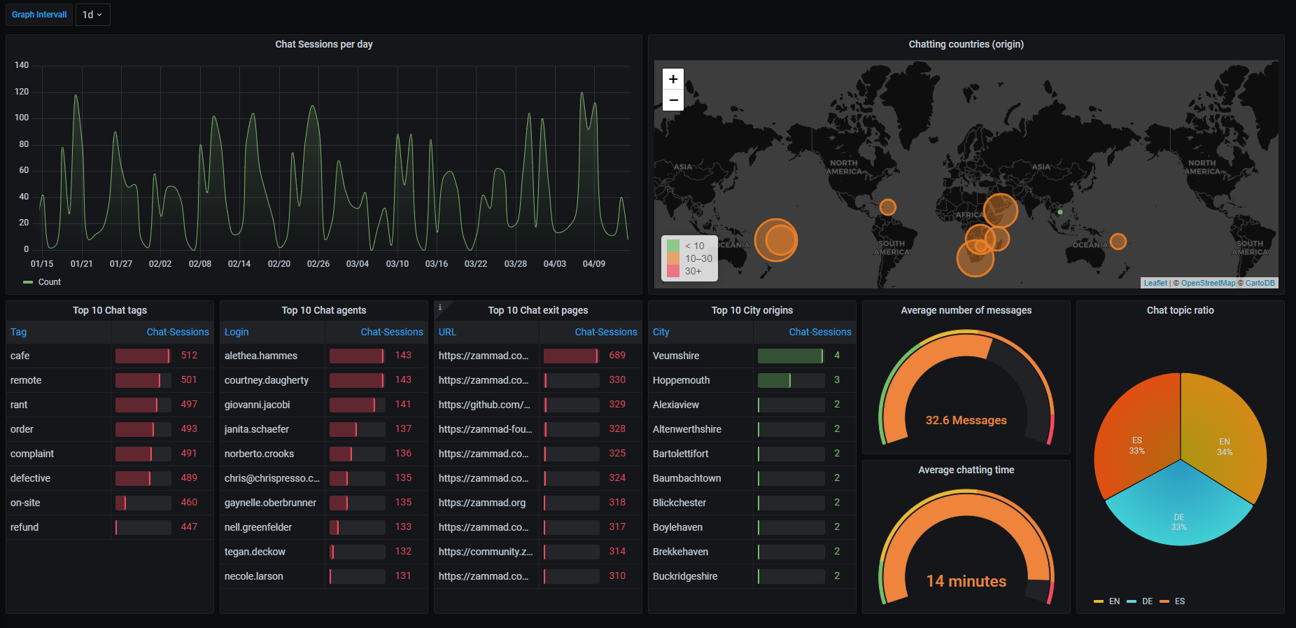 Sample Dashboard to visualize Zammad Chats.