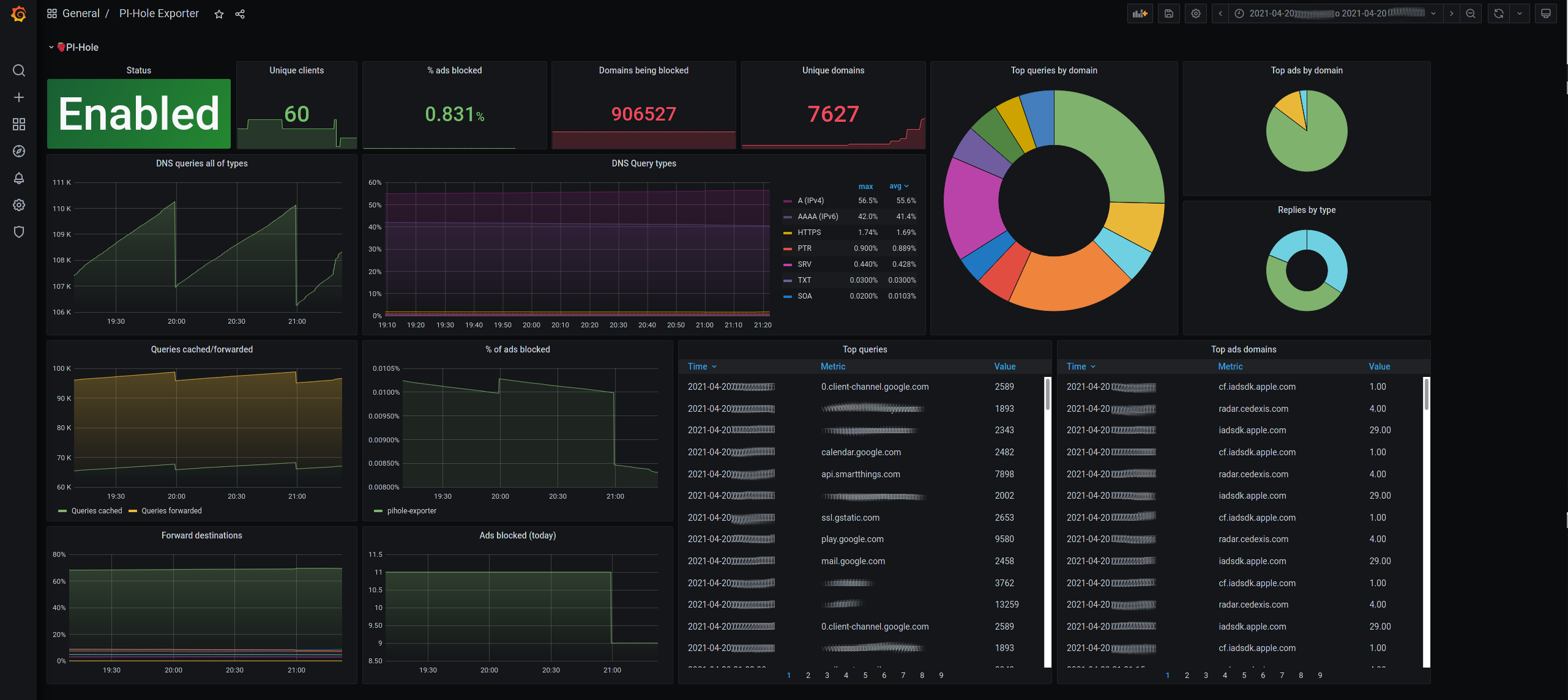 This is a PI-Hole dashboard when using the https://github.com/eko/pihole-exporter Prometheus exporter