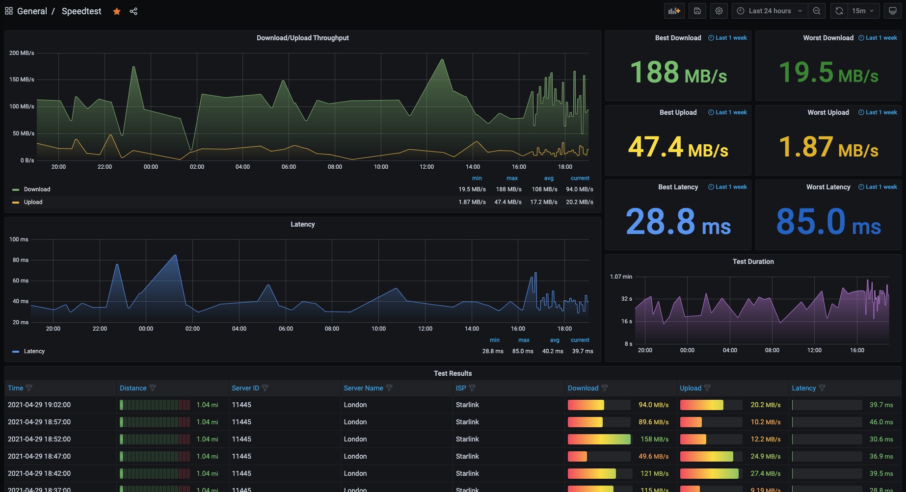 Speedtest metrics